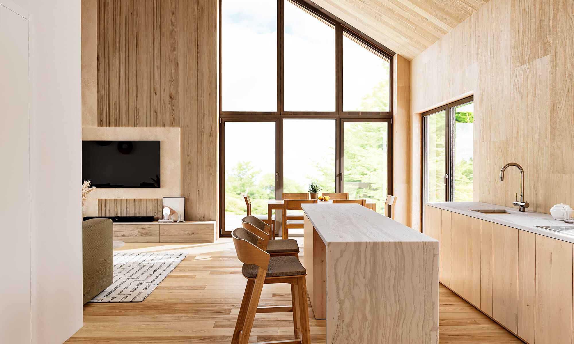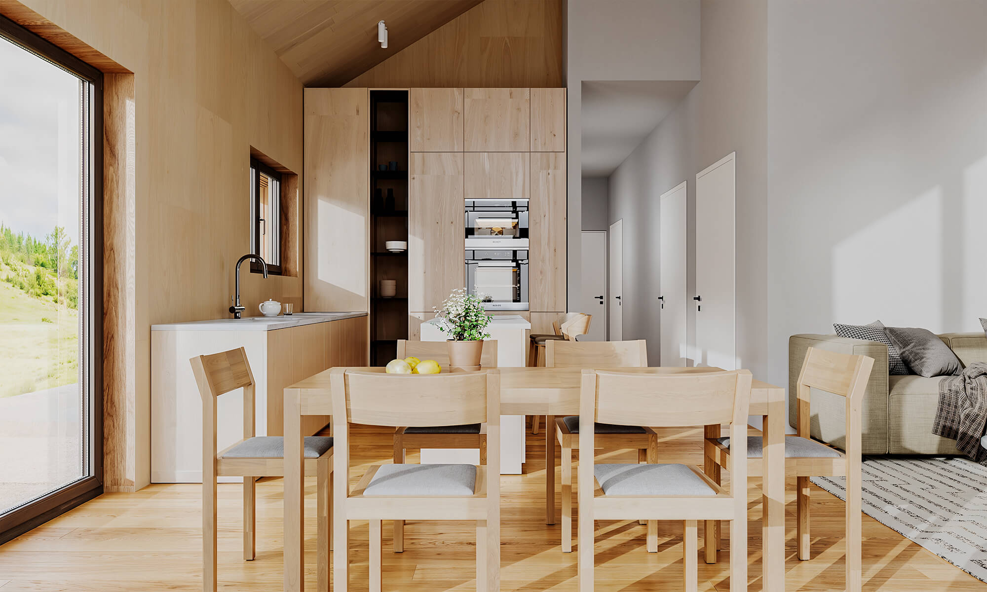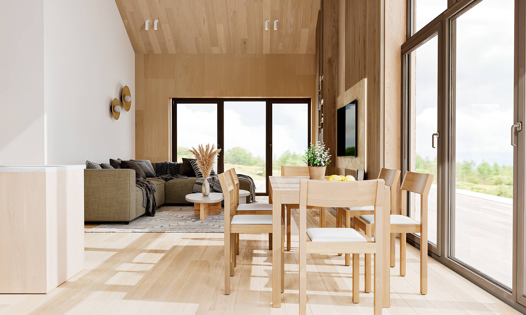 Projekt ten to domy szkieletowe całoroczne. Konstrukcja jest trwała, ciepła i długowieczna – idealna do zamieszkania przez cały rok jako domy całoroczne modułowe.