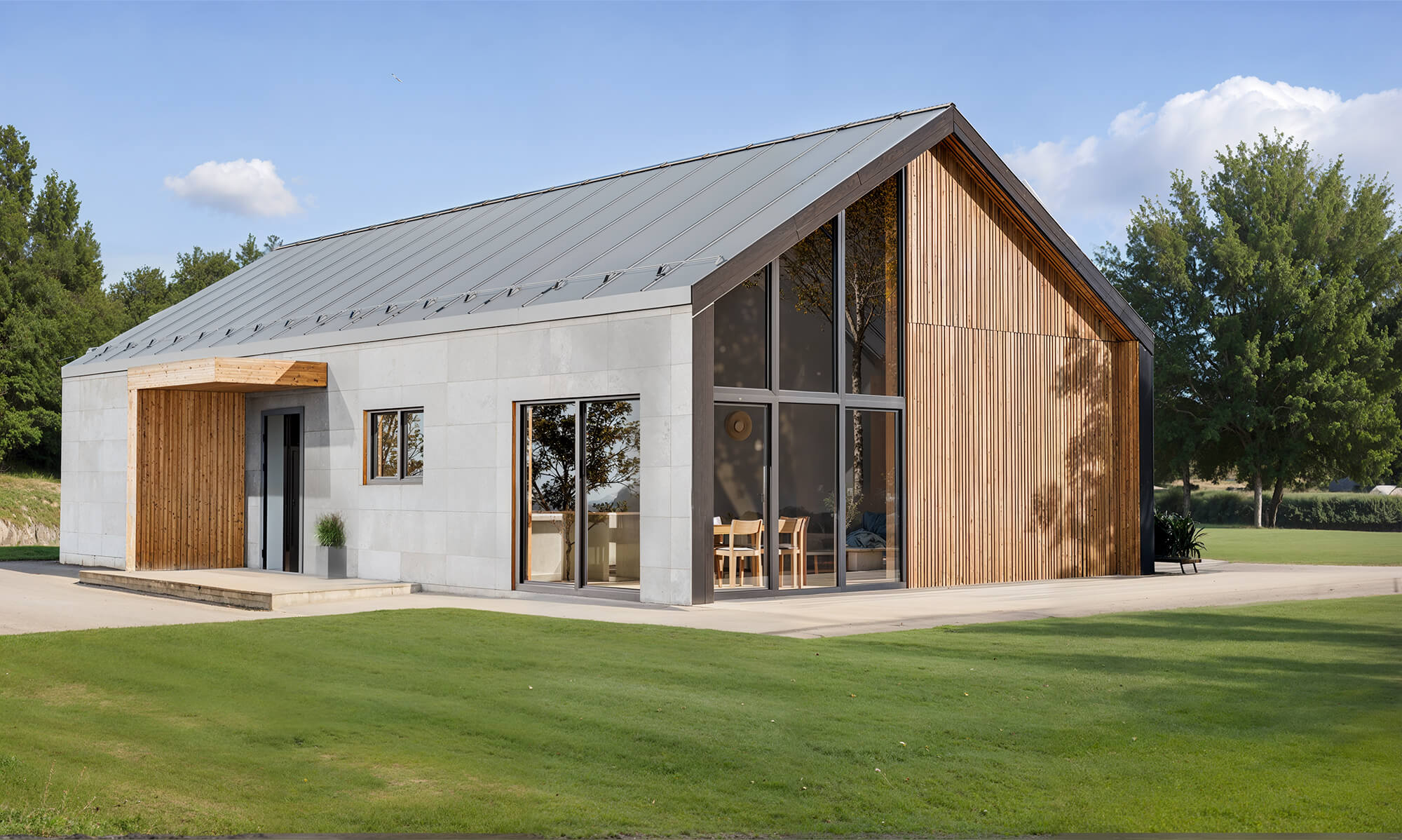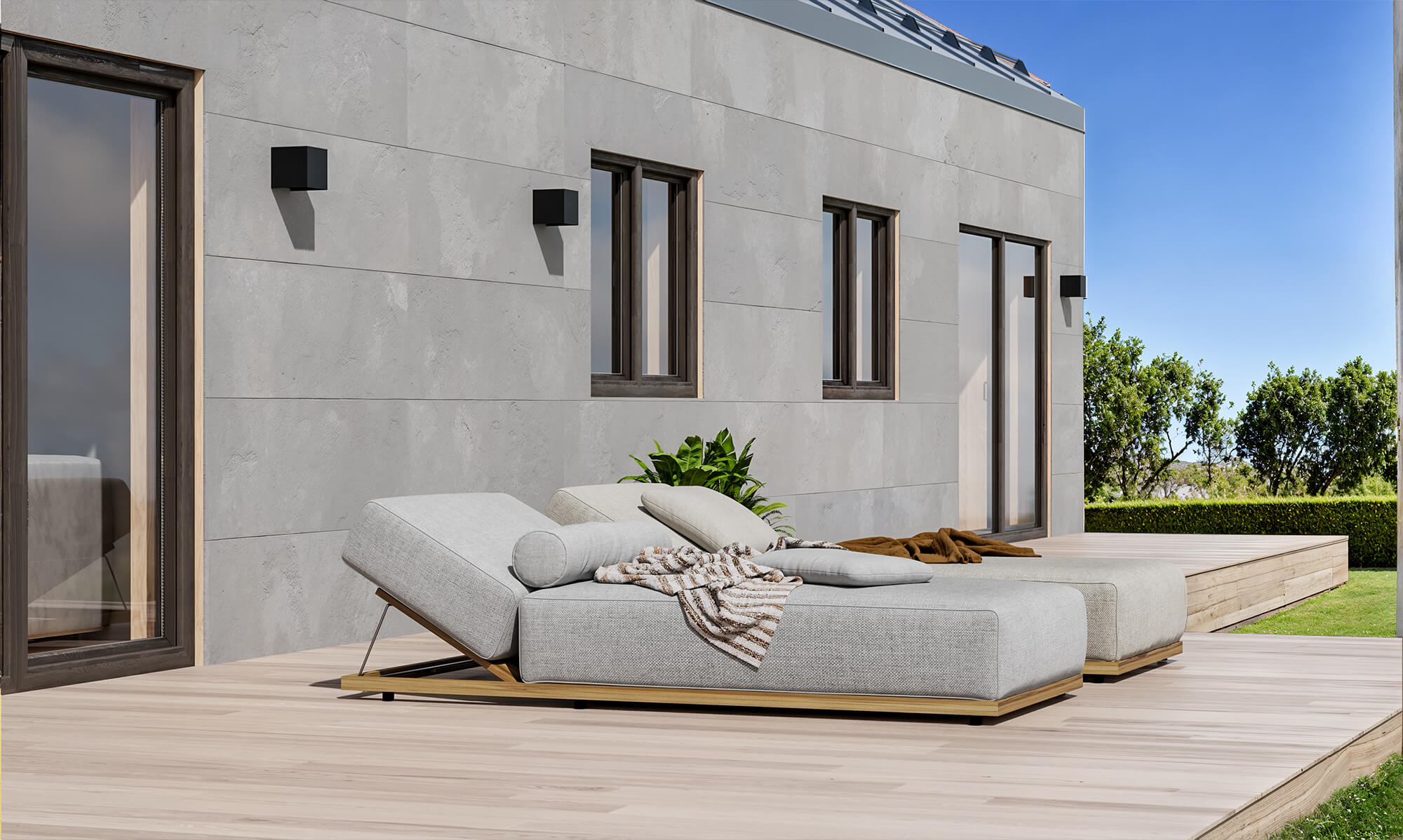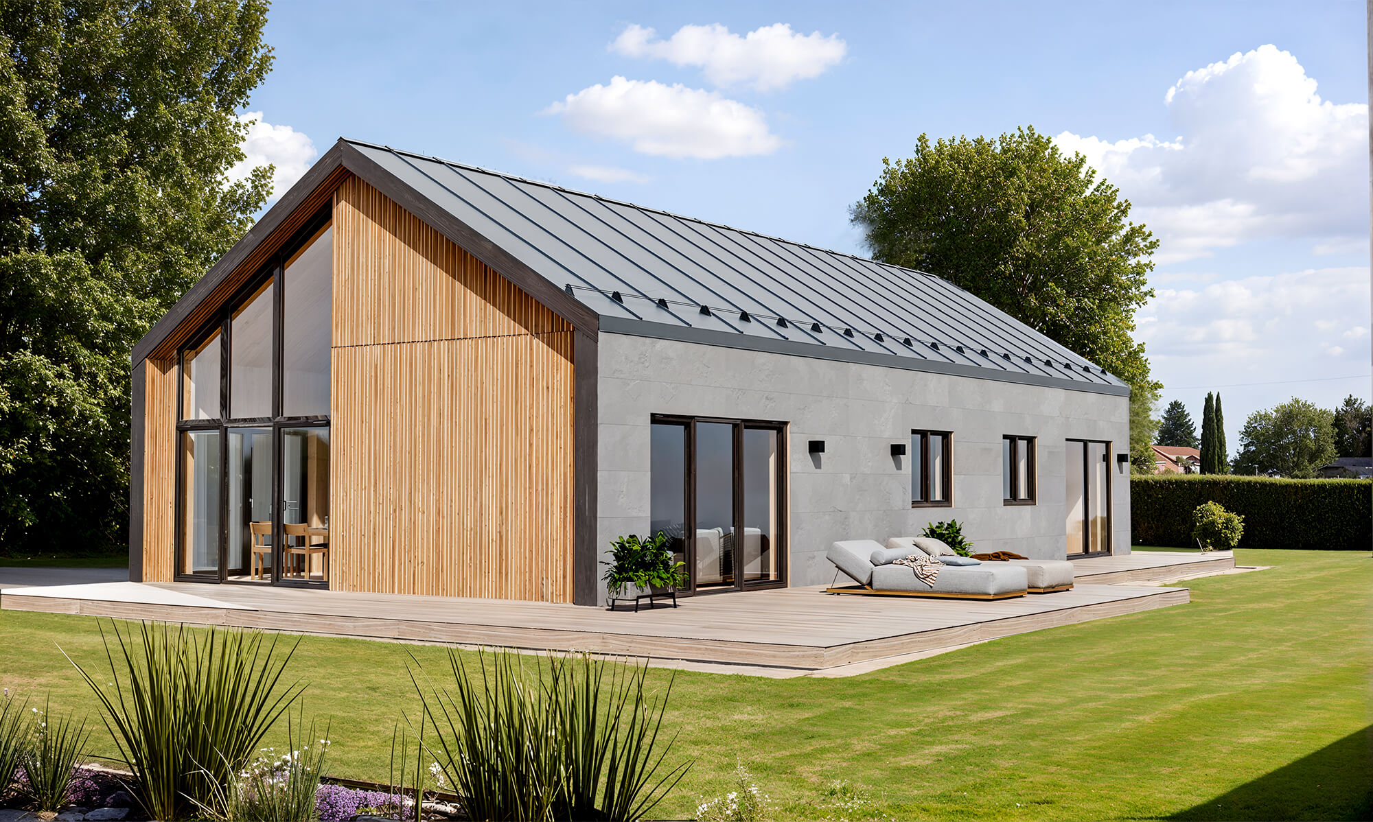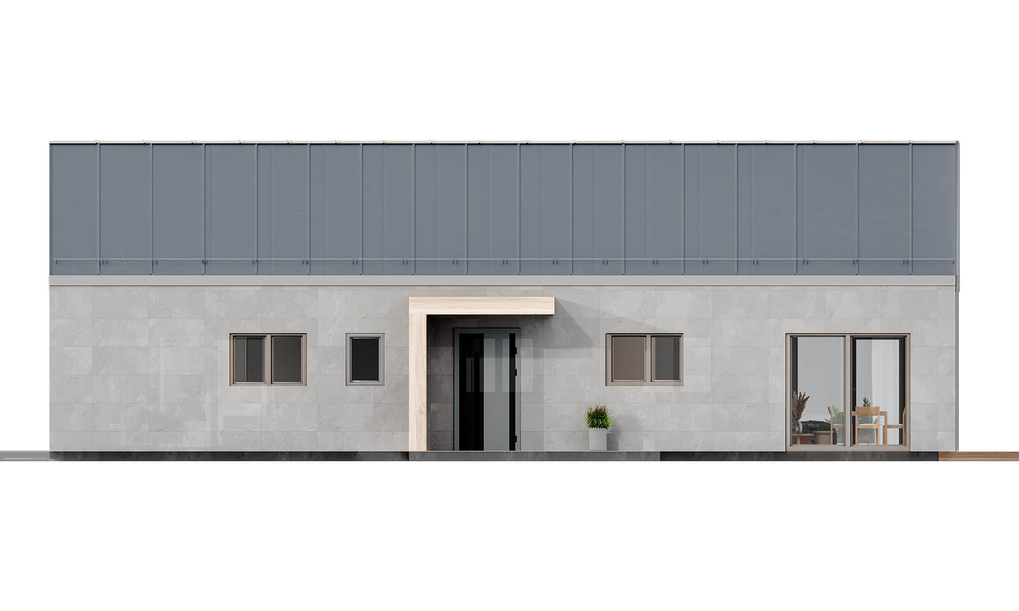 Elewacja beton fakturowany, w połączeniu z malowanymi deskami, tworzy elegancki i trwały efekt. Wizualizacje pomagają wyobrazić sobie, jak będzie wyglądał Twój dom.