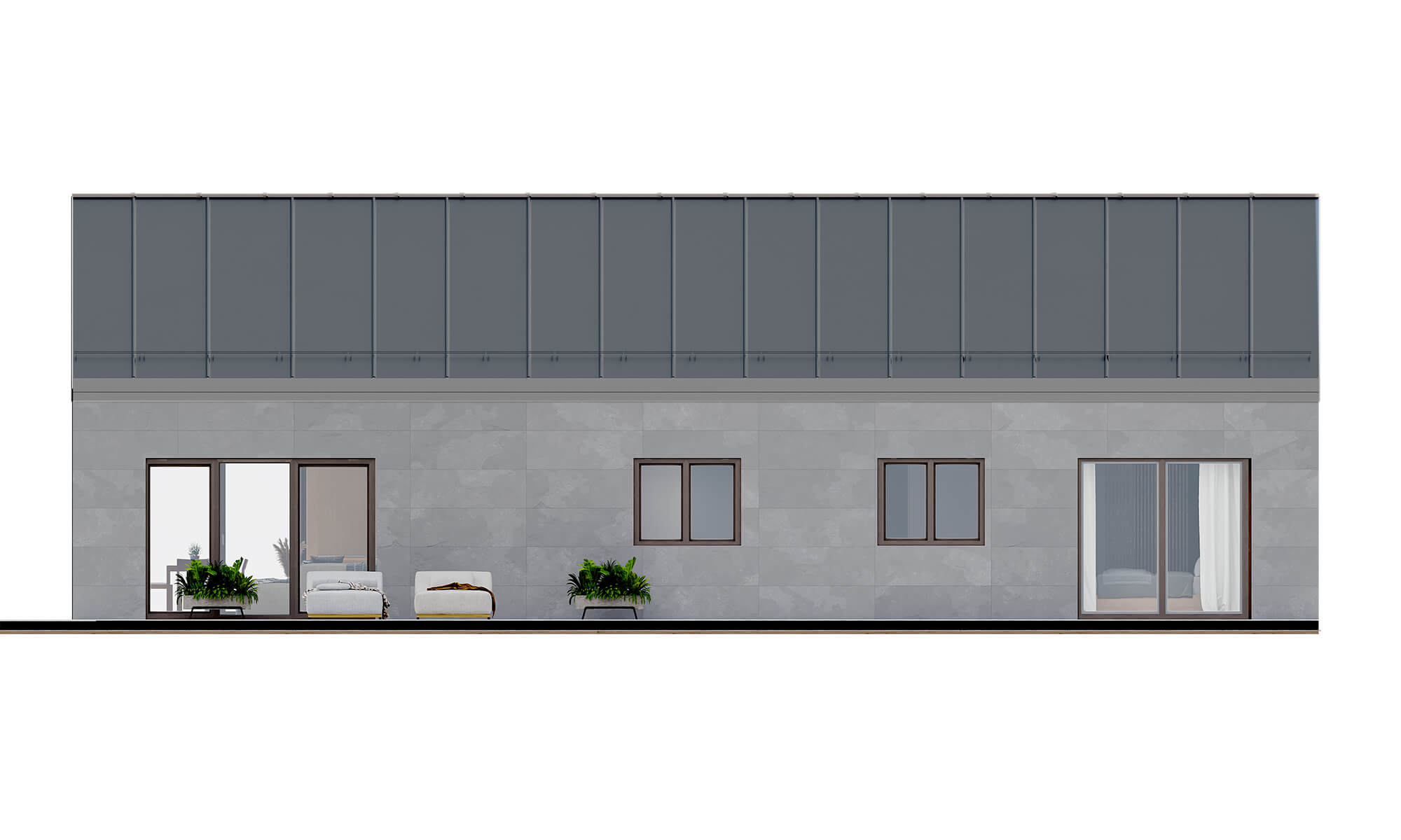 DOM MIESZKALNY W STANIE SUROWYM ZAMKNIĘTYM_ WT 2021 – Ciepła płyta fundamentowa + system ociepleń PRO + stolarka 3 szybowe PVC + elewacja beton fakturowany + x3 malowana elewacja + pokrycie dachu i orynnowanie + dostawa i montaż zestawu.