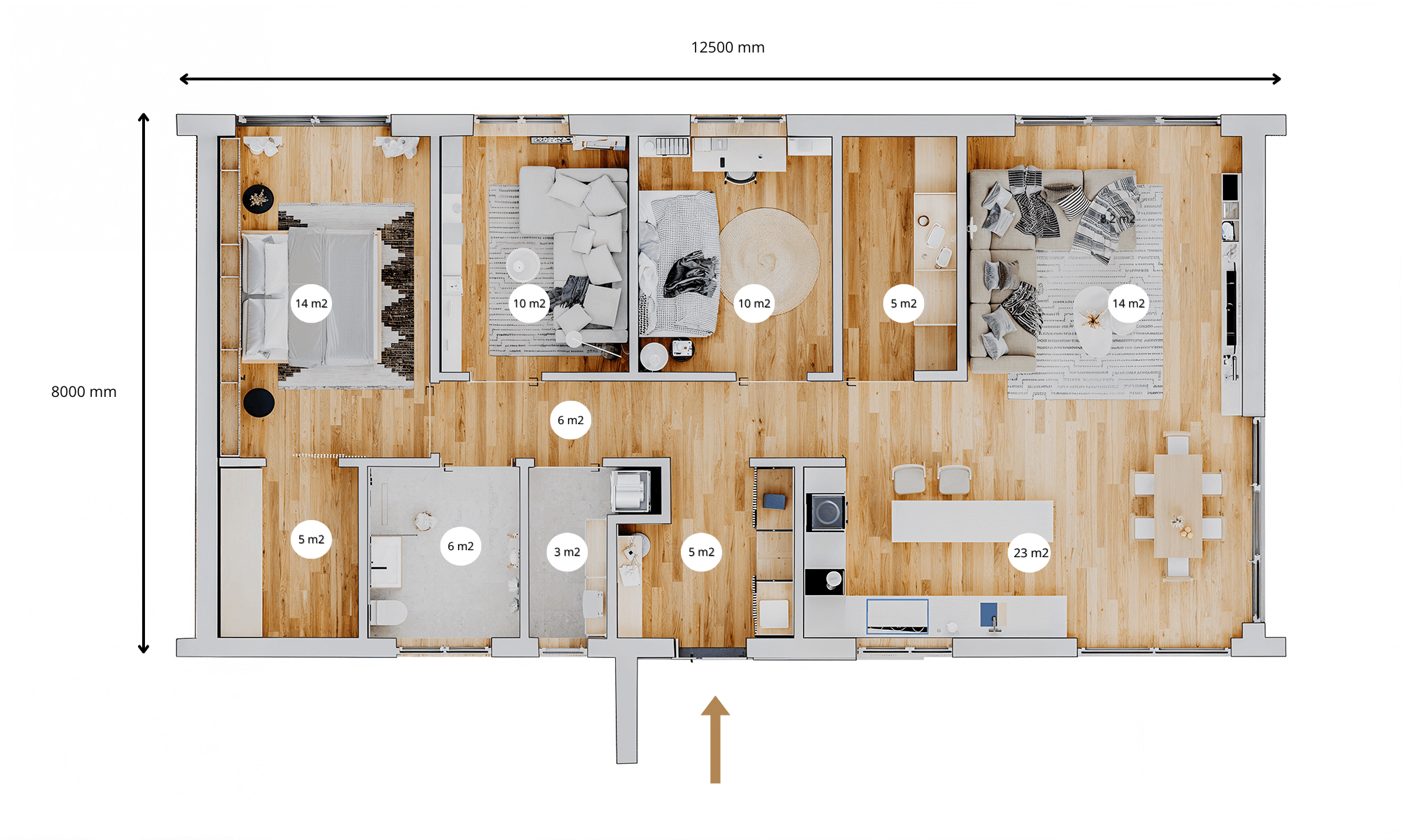 Dom 100 m² mieszkalny, modułowy, całoroczny – to nowoczesna, funkcjonalna i przytulna przestrzeń dla Twojej rodziny. Dom o powierzchni 100 m² z 3 sypialniami, 4 pomieszczeniami pomocniczymi, w których można urządzić sanitariaty, kotłownię lub garderoby, przestronnym holem (5 m²) oraz dużym salonem z jadalnią i kuchnią (37 m²). Wysokie sufity i duże okna zapewniają naturalne światło oraz poczucie przestrzeni.