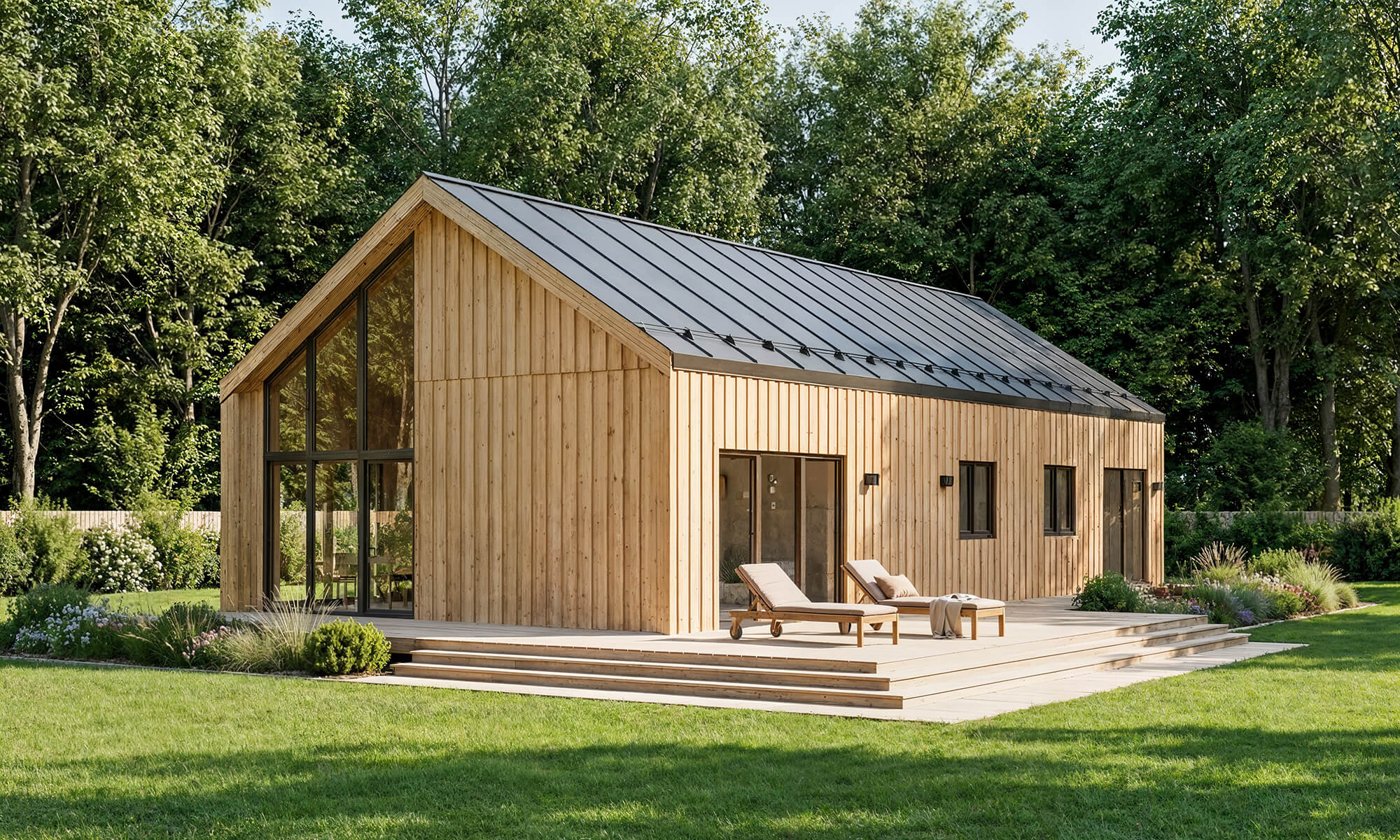 W cenę wliczony jest zestaw PREMIUM PRO: m.in. hydroizolacja pod podwaliny, impregnowane podwaliny, elementy podłogi z izolacją, prefabrykowane panele ścienne z izolacją, ściany działowe z wełną, zestaw dachu z izolacją, elementy montażowe i uszczelnienia, a także stolarka (PVC 3-szybowa dostępna w Premium Pro).