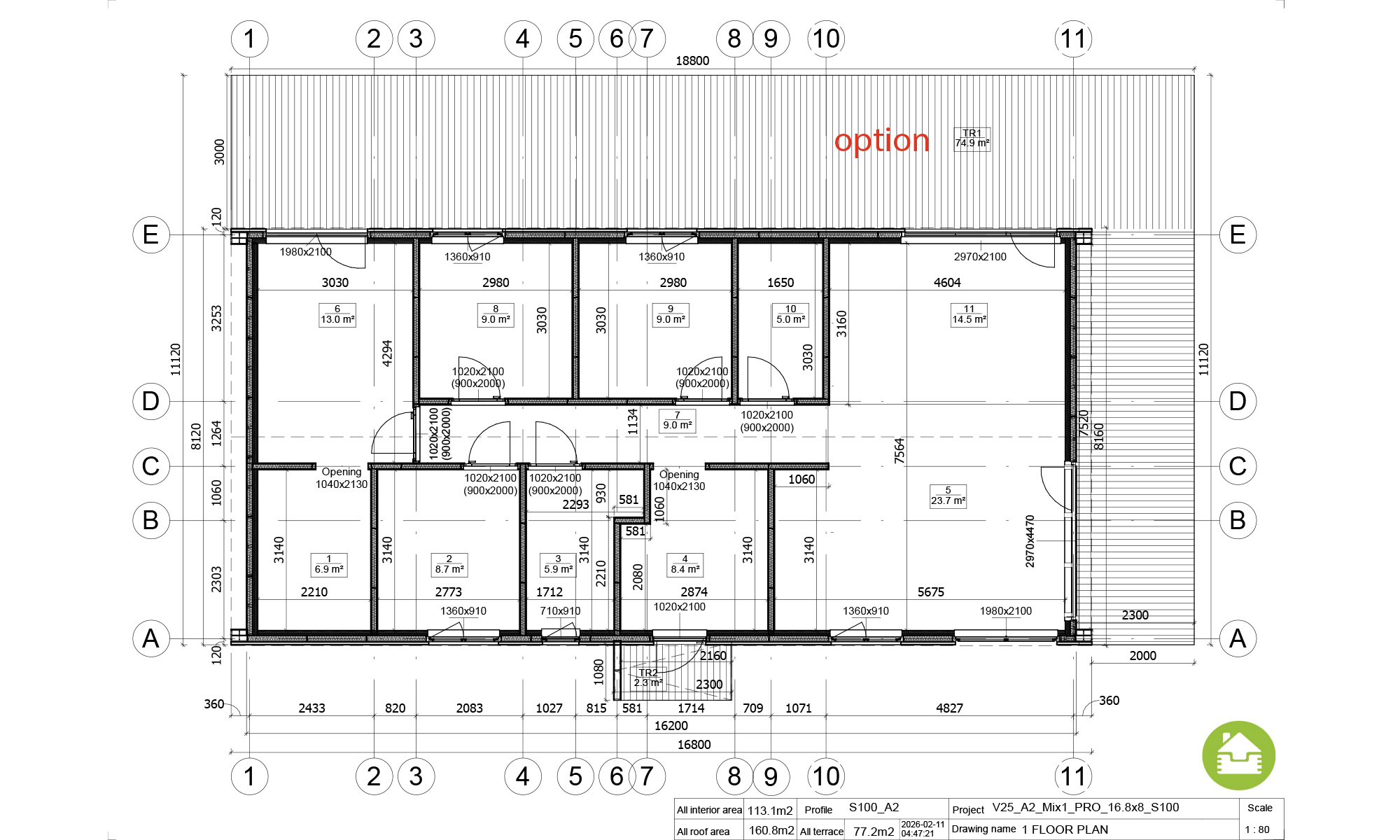 W realizacji stosujemy technologię nowoczesne domy z drewna z wysokiej jakości stolarką okienną i drzwiową, systemem ociepleń „PRO” oraz starannie wykończoną elewacją. W opcjach dodatkowych oferujemy możliwość wyboru koloru panele podłogowe winylowe (szeroka gama kolorów), izolacji podłogi, wykończenia ścian i sufitów w drewnianej boazerii lub płytach FARMACEL, a także koloru zewnętrznych desek elewacyjnych i stolarki okiennej PVC.