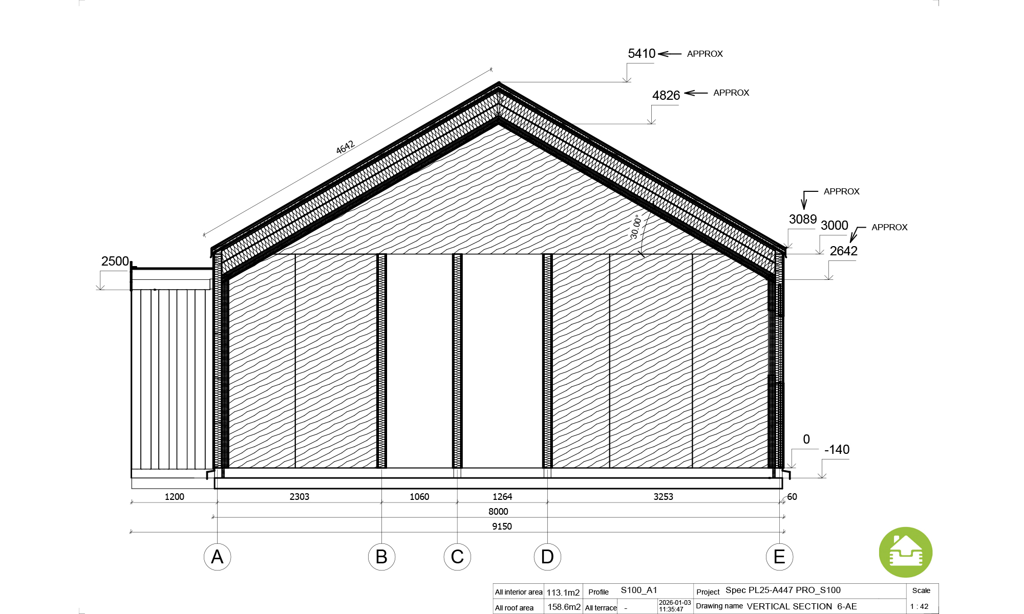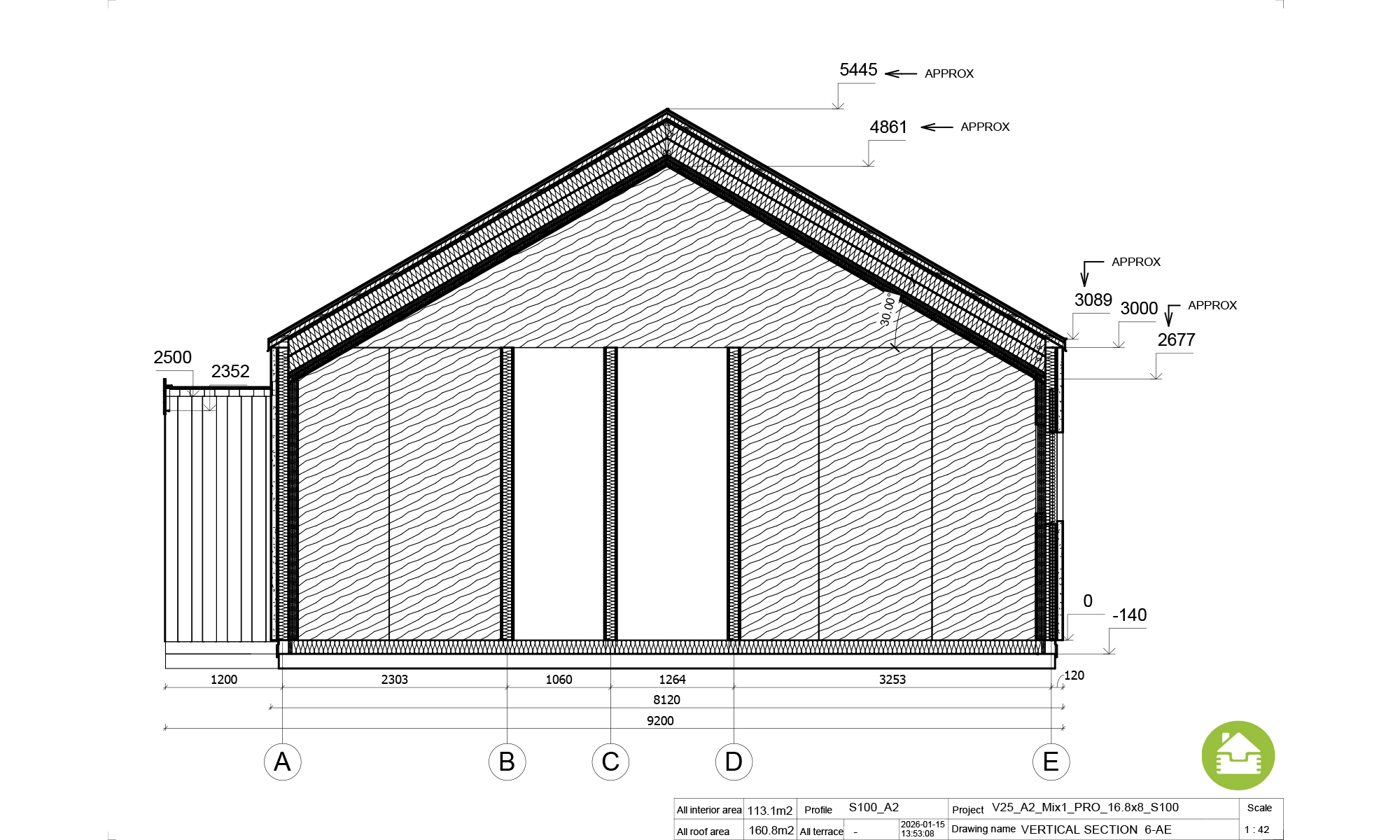 Projekt ten to domy szkieletowe całoroczne. Konstrukcja jest trwała, ciepła i długowieczna – idealna do zamieszkania przez cały rok jako domy całoroczne modułowe.