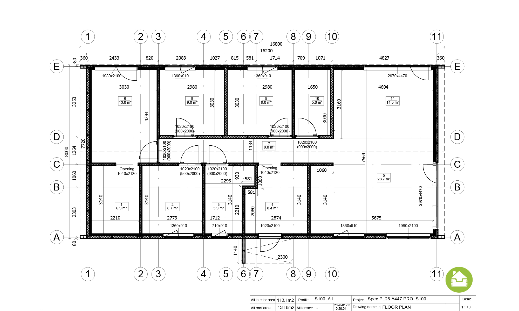 Dom 113 m² mieszkalny, modułowy, całoroczny – to nowoczesna, funkcjonalna i przytulna przestrzeń dla Twojej rodziny. Dom o powierzchni 113 m² z 4 sypialniami, 3 pomieszczeniami pomocniczymi, w których można urządzić sanitariaty, kotłownię lub garderoby, przestronnym holem (8 m²) oraz dużym salonem z jadalnią i kuchnią (38 m²). Wysokie sufity i duże okna zapewniają naturalne światło oraz poczucie przestrzeni.