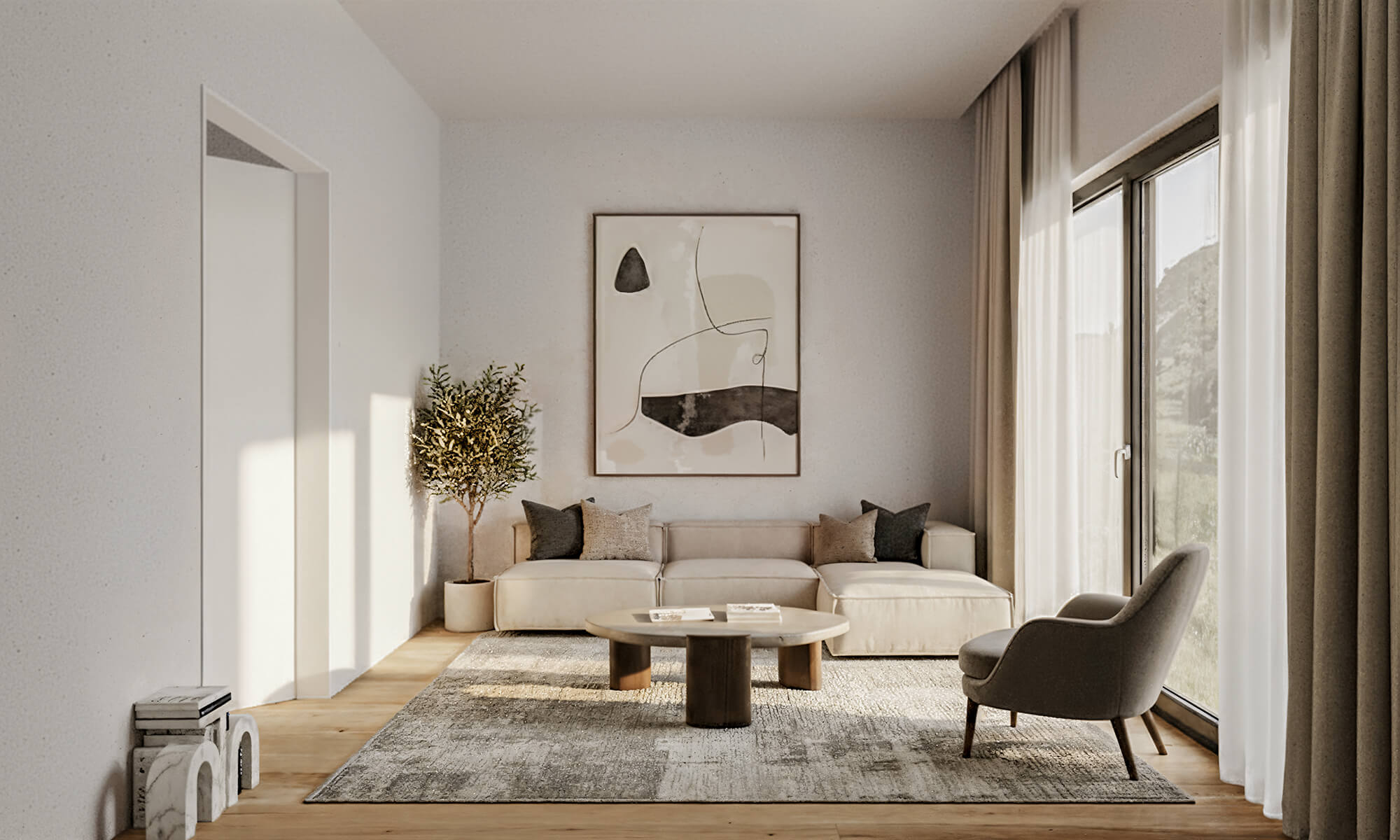 Wysokie sufity i duże przeszklenia, które wypełniają wnętrza naturalnym światłem