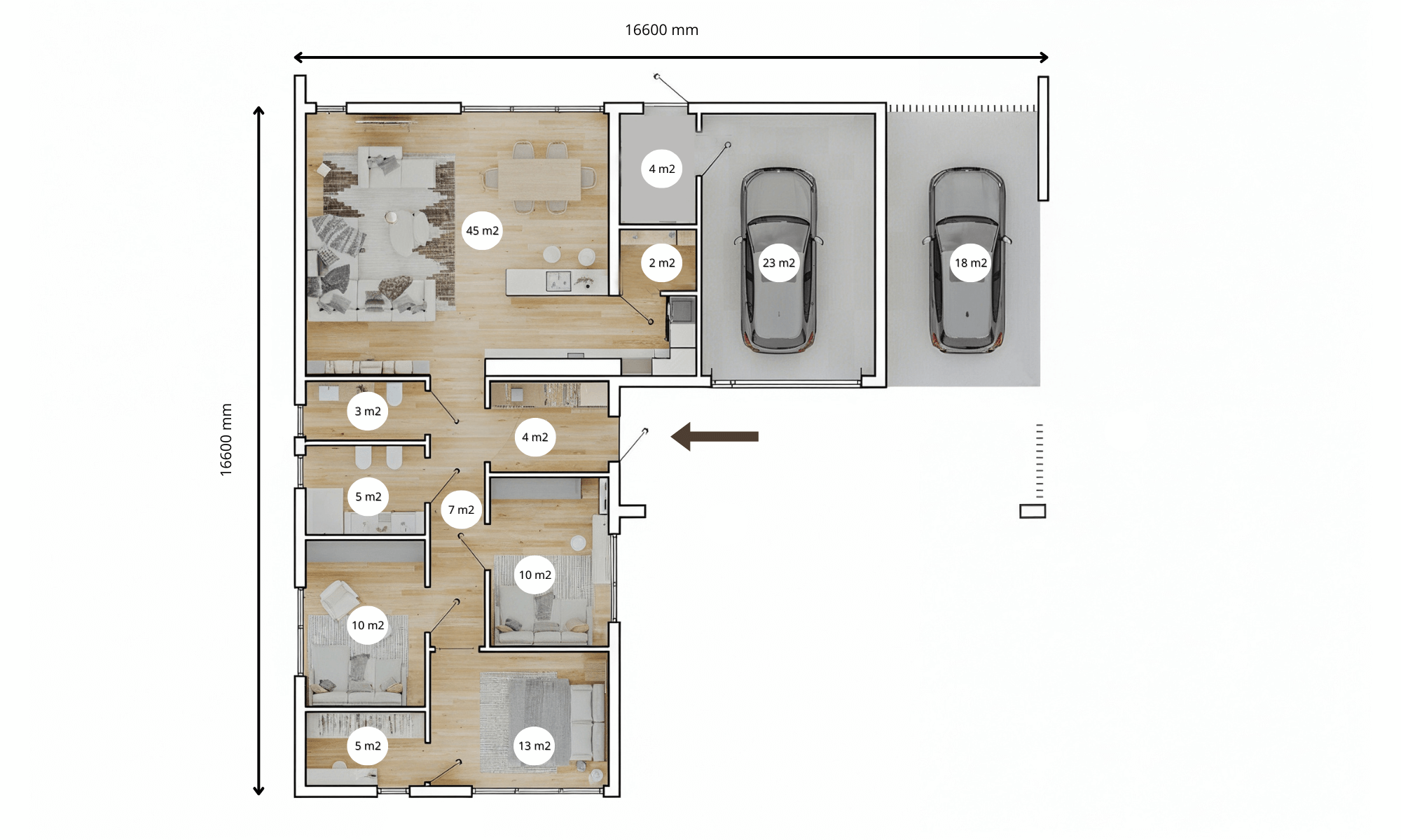 Dom został zaprojektowany z myślą o 6 pełnowartościowych miejscach do spania, dzięki czemu świetnie sprawdzi się jako dom rodzinny.