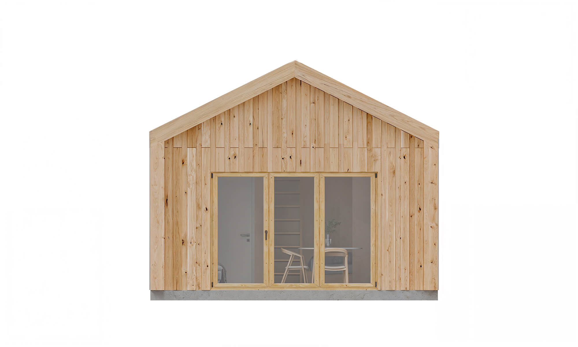 - Trwałość na lata - Elewacja wykonana z 3-krotnie malowanej deski drewnianej charakteryzuje się wyjątkową odpornością na warunki atmosferyczne. Ten dom drewniany zachowa piękny wygląd przez wiele lat.