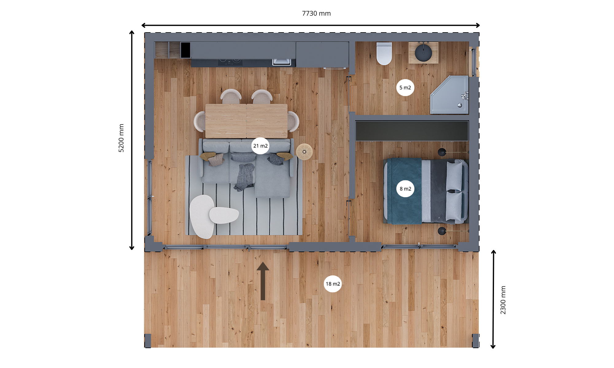 Modułowy dom całoroczny „Miechów V15.1_A1” (34 m²) – Twoja oaza spokoju bez biurokracji