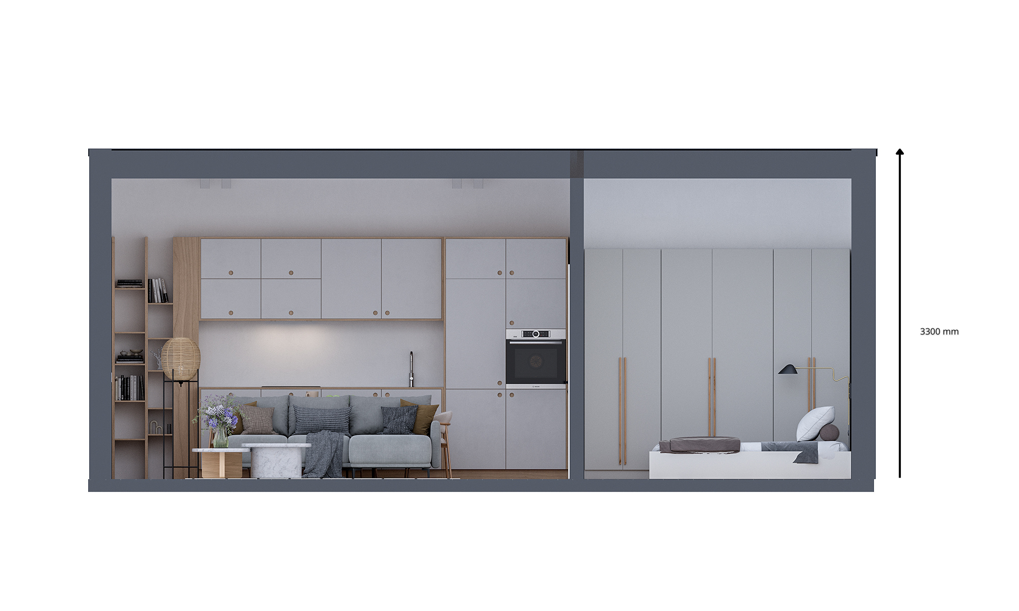 Łatwy w utrzymaniu: Przestrzeń 34 m² jest wystarczająca do komfortowego życia (mieści salon, aneks kuchenny, sypialnię i pełnowymiarową łazienkę), ale wymaga minimalnego wysiłku w sprzątaniu i utrzymaniu.