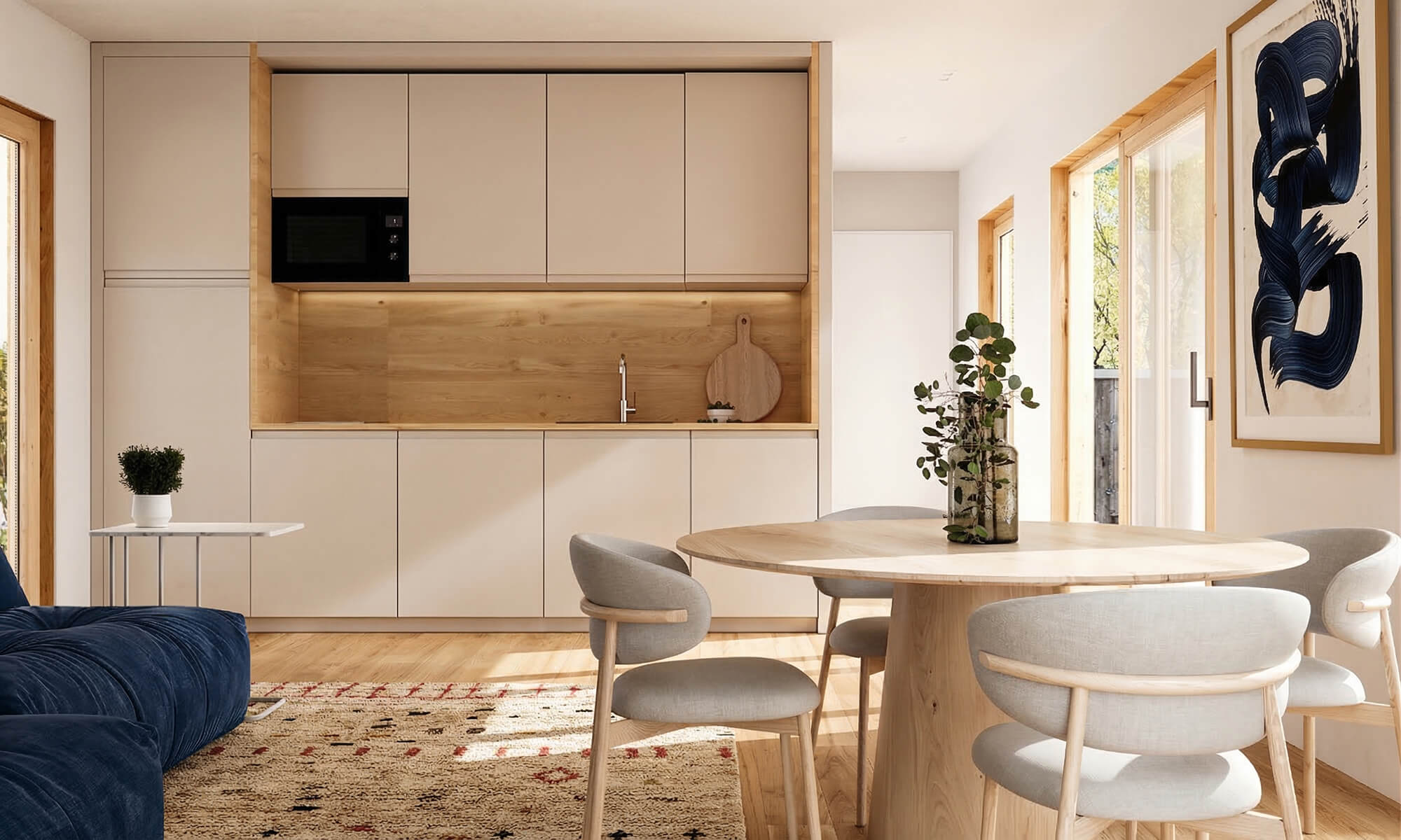 Łatwość w utrzymaniu: To kompaktowa przestrzeń, która w pełni mieści wszystkie strefy niezbędne do wygodnego życia i wizyt wnuków, jednak obowiązki domowe i sprzątanie nie pochłaniają cennego czasu ani sił fizycznych.