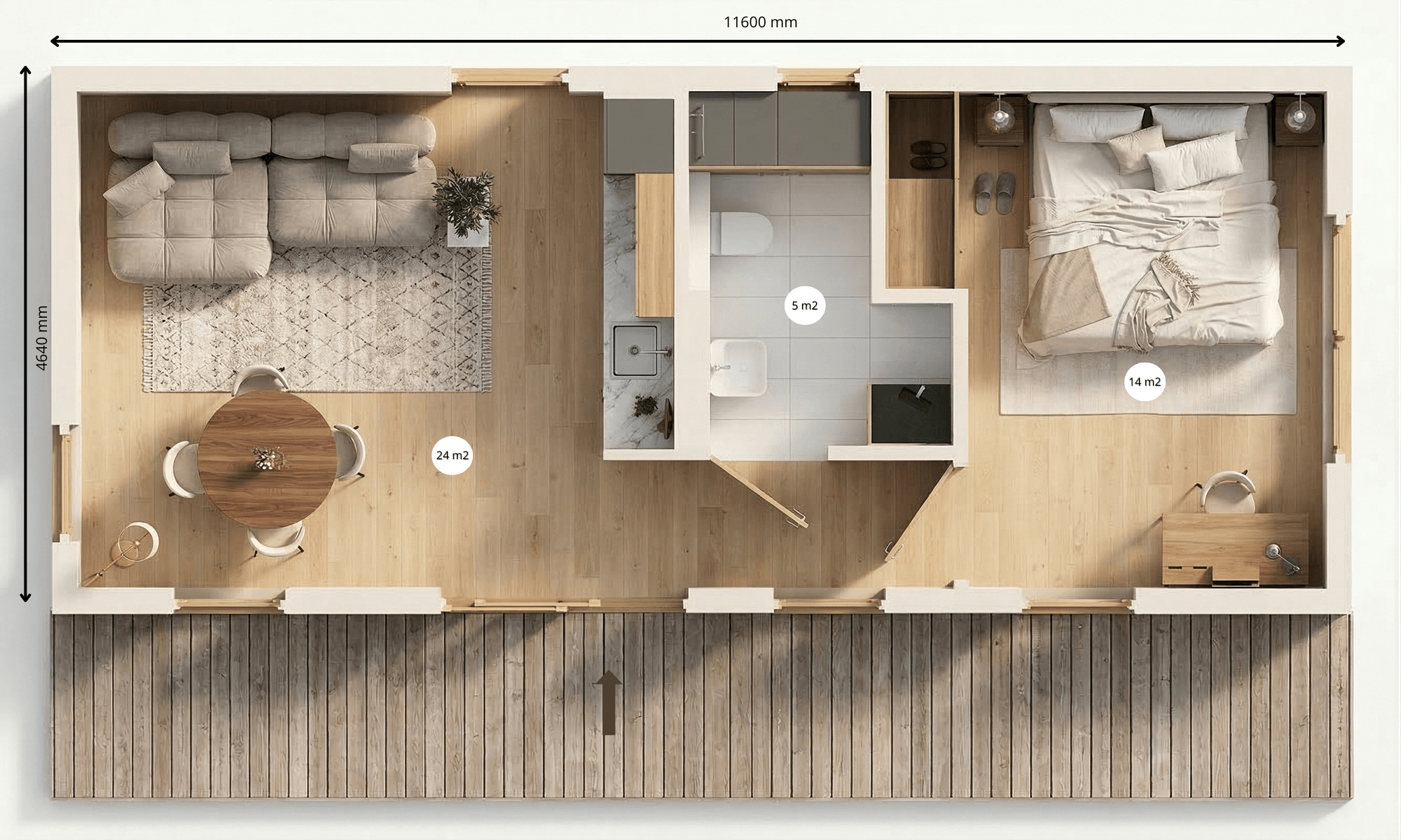 2. Bezpieczna i wygodna przestrzeń dla seniorów (Domy dla seniora) Powierzchnia 43 m² to po prostu idealny wybór dla seniorów szukających spokoju bliżej natury lub na własnej działce, gdzie wszystko zostało zaplanowane z myślą o człowieku.