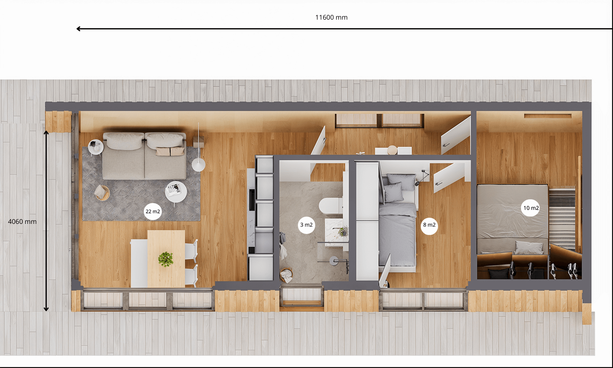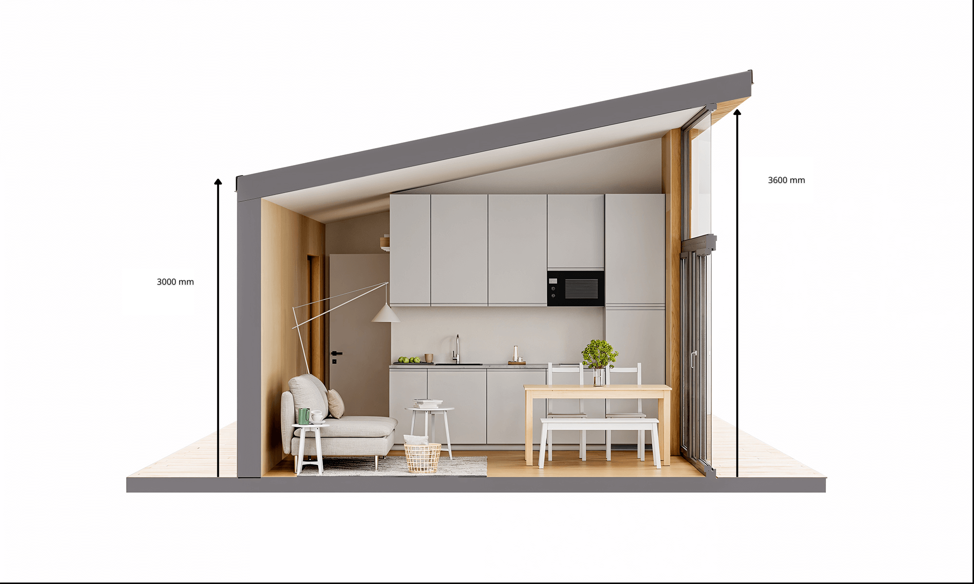 Dom 43 m² mieszkalny, modułowy, całoroczny KANIN V21_A1 – Twój nowy dom w 3-5 tygodni