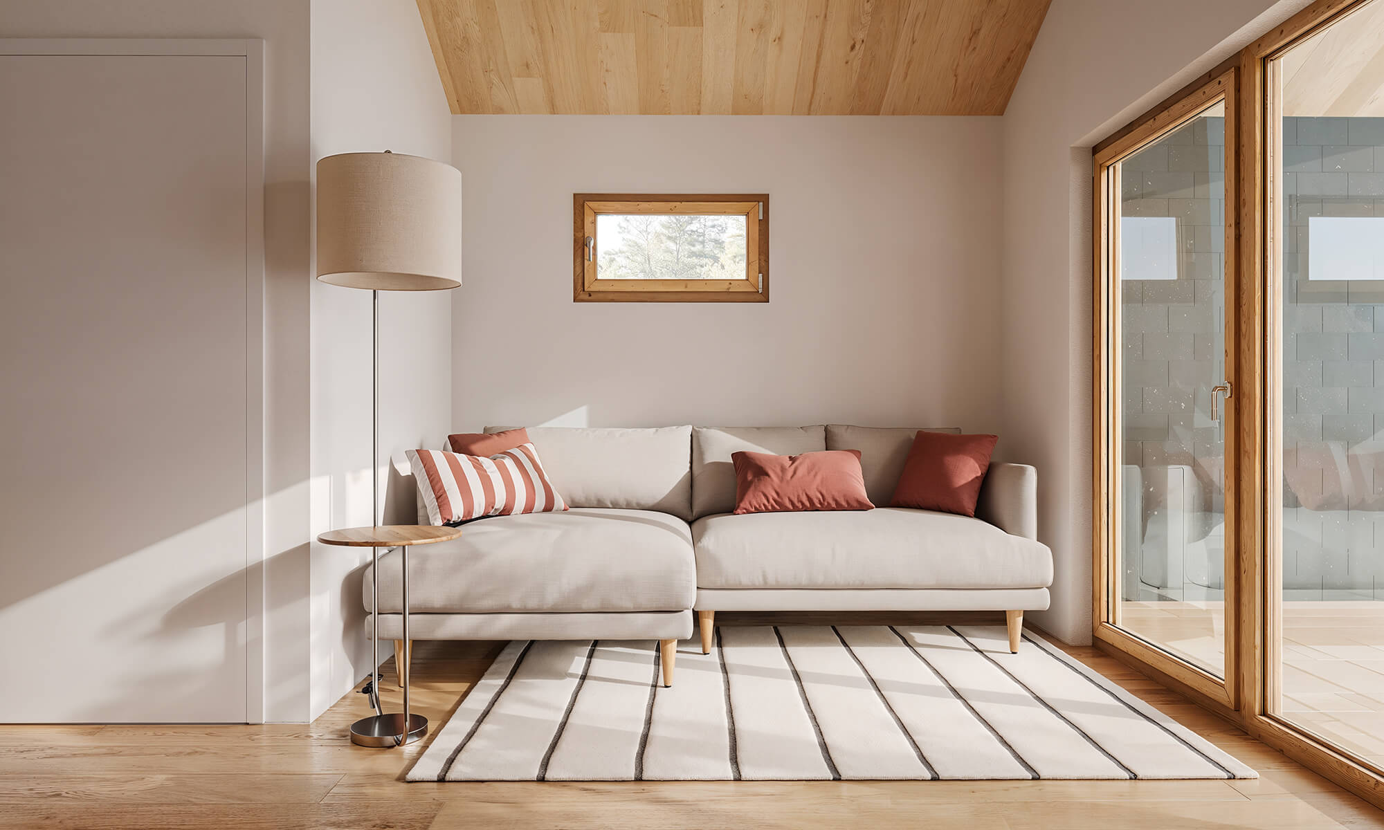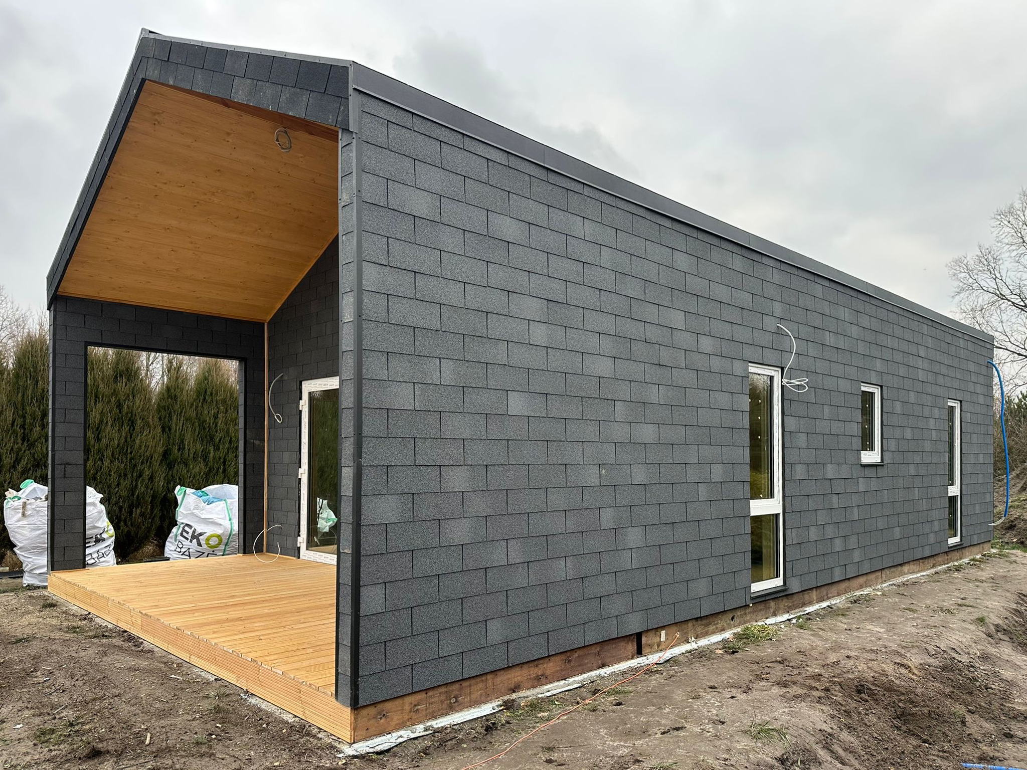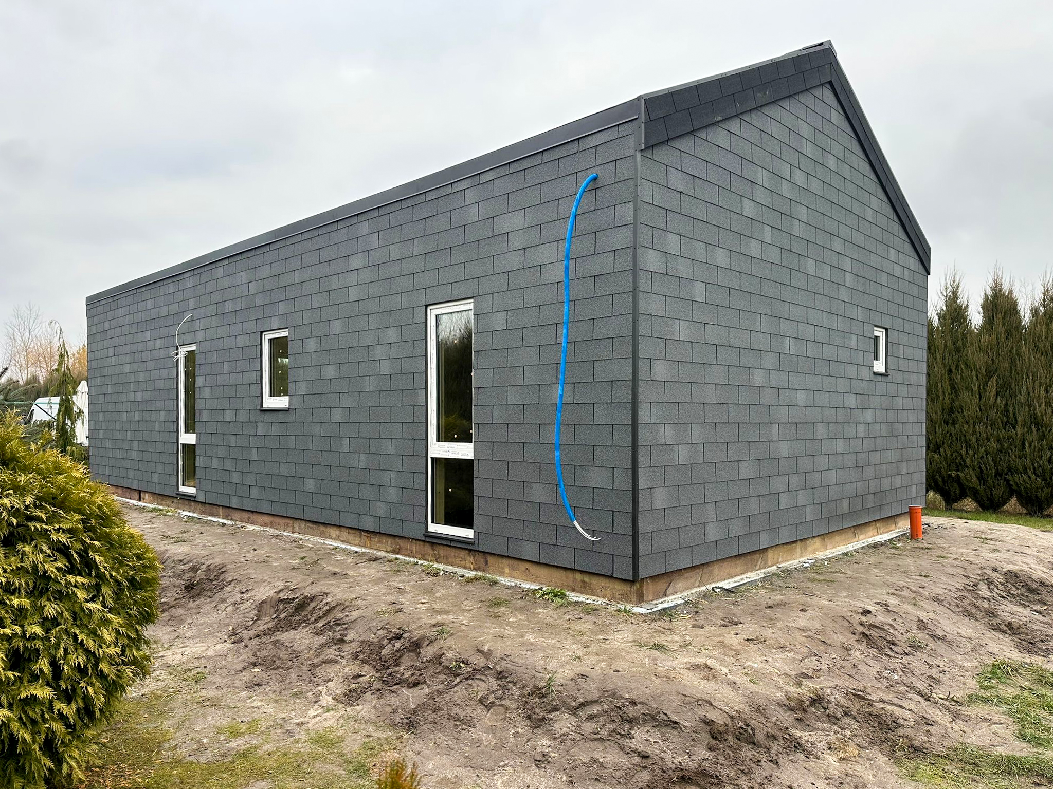 Już w standardowej wersji model Jaracz V2_A2 jest ciepły i odpowiedni do całorocznego użytku. Wariant Premium Thermo spełnia wszelkie wymagania izolacji budynków całorocznych zgodne z normami WT2021, co gwarantuje komfort termiczny nawet zimą. Nowoczesne wykończenie elewacji trwałym i estetycznym gontem bitumicznym to świetna alternatywa dla tradycyjnego tynku. Szeroki wybór kolorów i kształtów pozwala dopasować elewację do indywidualnych preferencji.