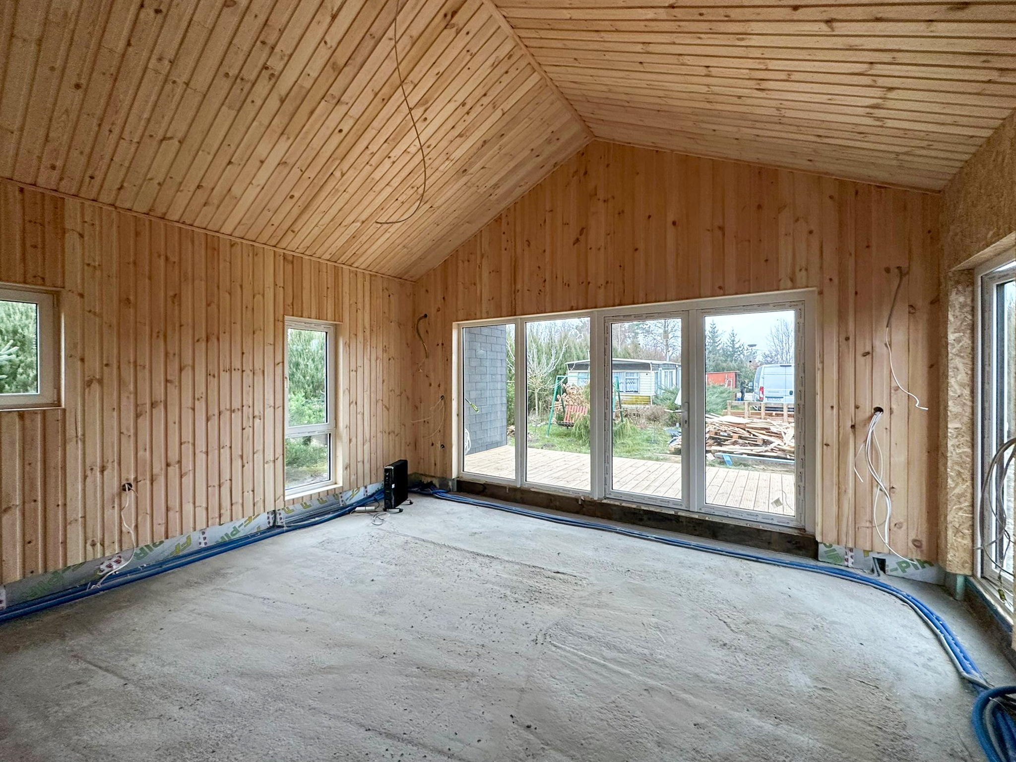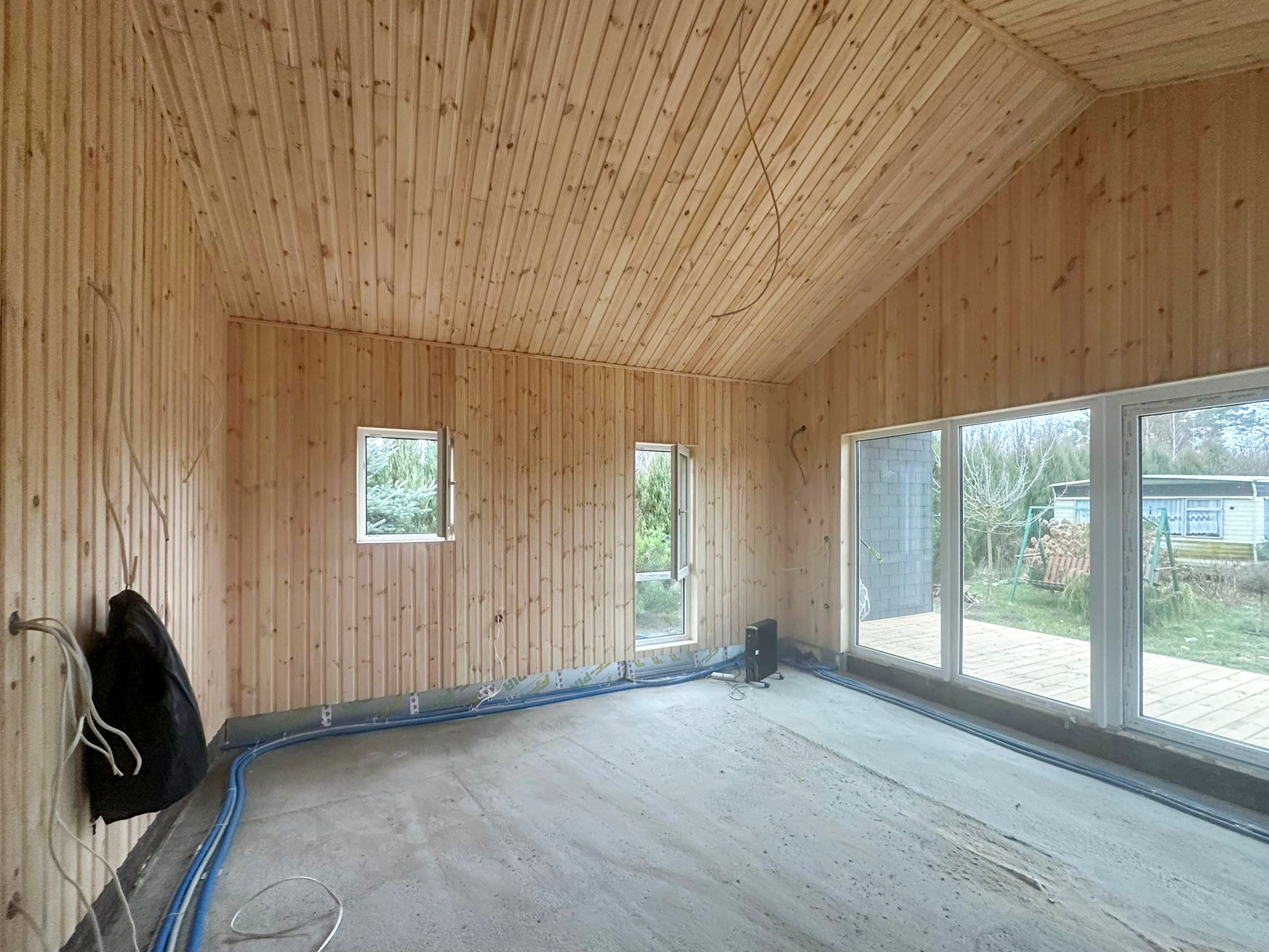 Jednokondygnacyjna konstrukcja została zaprojektowana z myślą o komforcie użytkowników. Przemyślany układ pomieszczeń sprawia, że dom świetnie nadaje się nie tylko do okazjonalnego użytku, ale również jako miejsce stałego zamieszkania. Optymalnie zaplanowana przestrzeń zapewnia wygodę zarówno rodzinie, jak i mniejszej liczbie mieszkańców.