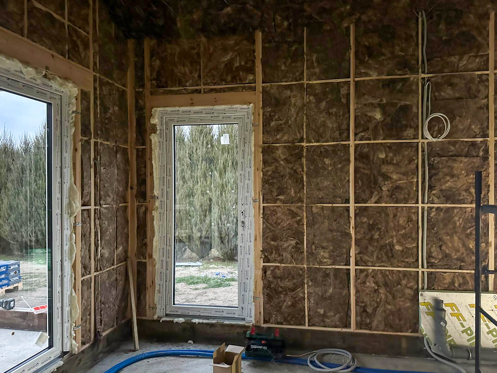 - Rodzaje okien: drewniane lub PVC z trzema szybami;