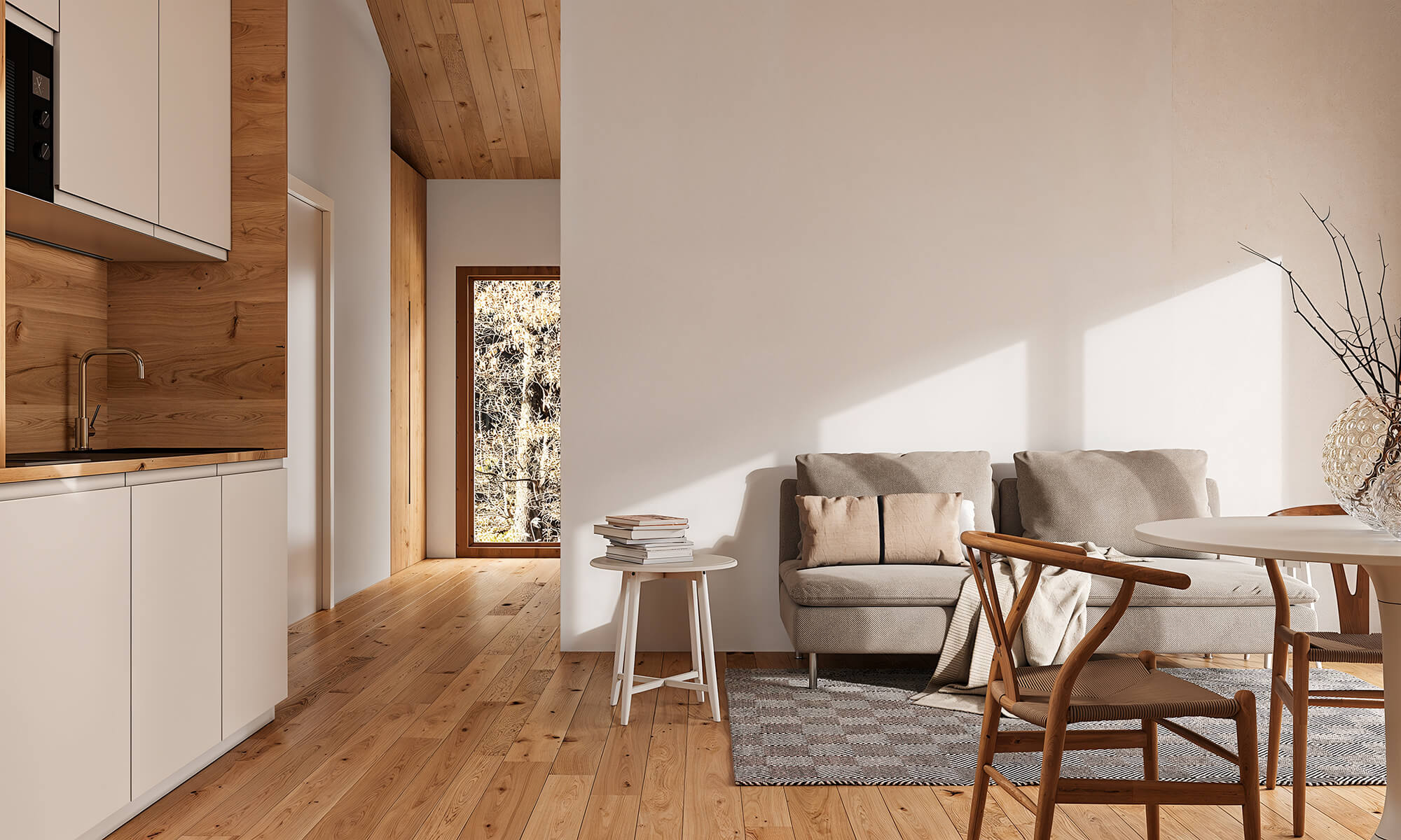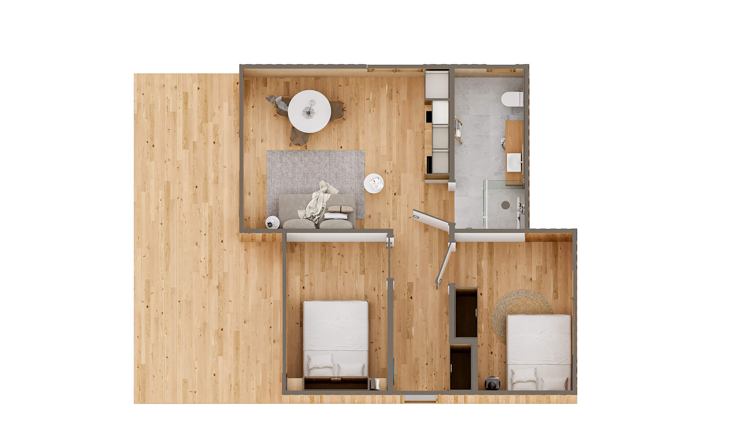 49 m² wygody i estetyki – tak można opisać ten wyjątkowy, modułowy dom drewniany. Model Banino V3_A1 oferuje nie tylko nowoczesny design, który przyciąga uwagę w każdej lokalizacji, ale również możliwość pełnej personalizacji wnętrza i zewnętrza, dostosowanej do Twoich potrzeb.