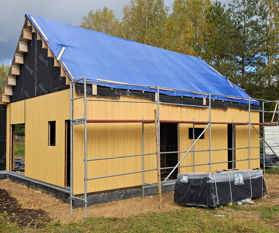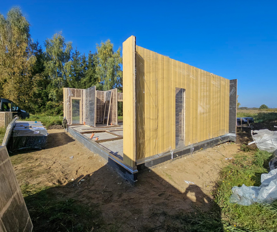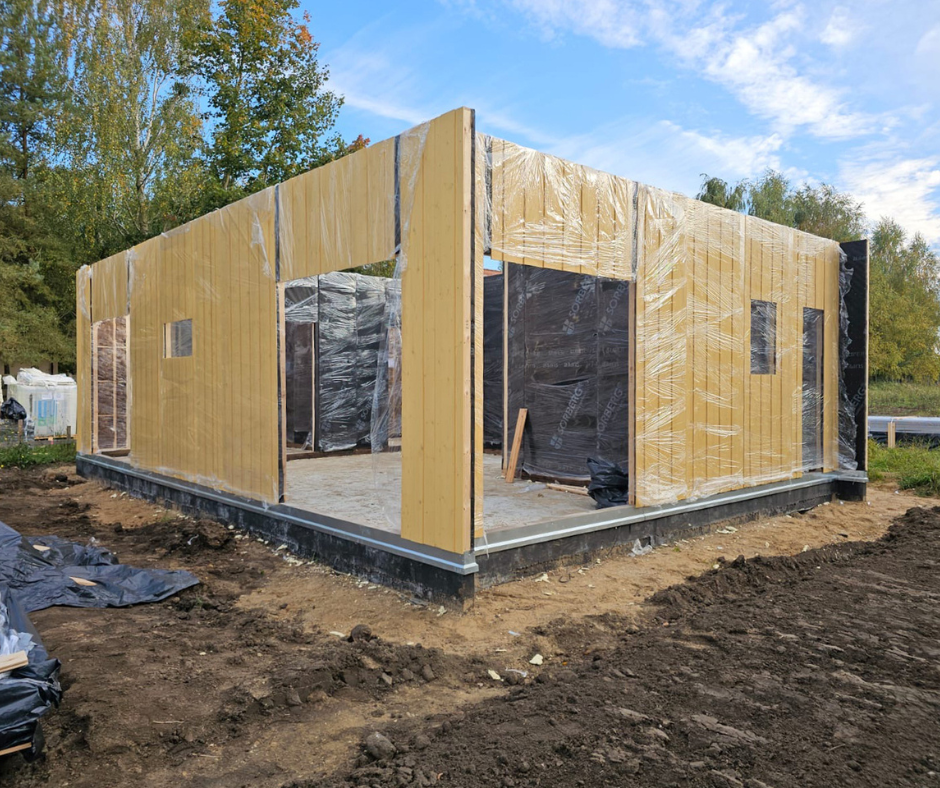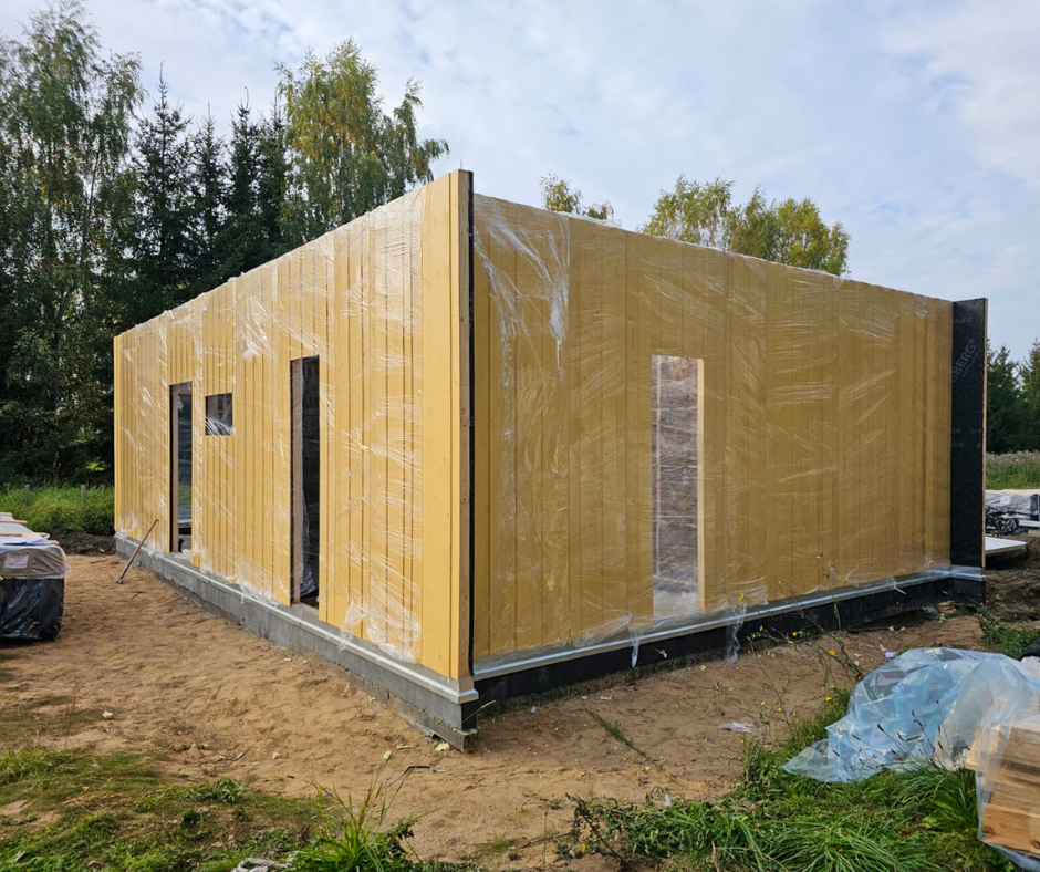 Konstrukcja domu oparta jest na nowoczesnych rozwiązaniach z prefabrykowanych modułów, co umożliwia szybki montaż – nawet w 4–5 tygodni wraz z pełnym wykończeniem wnętrz.