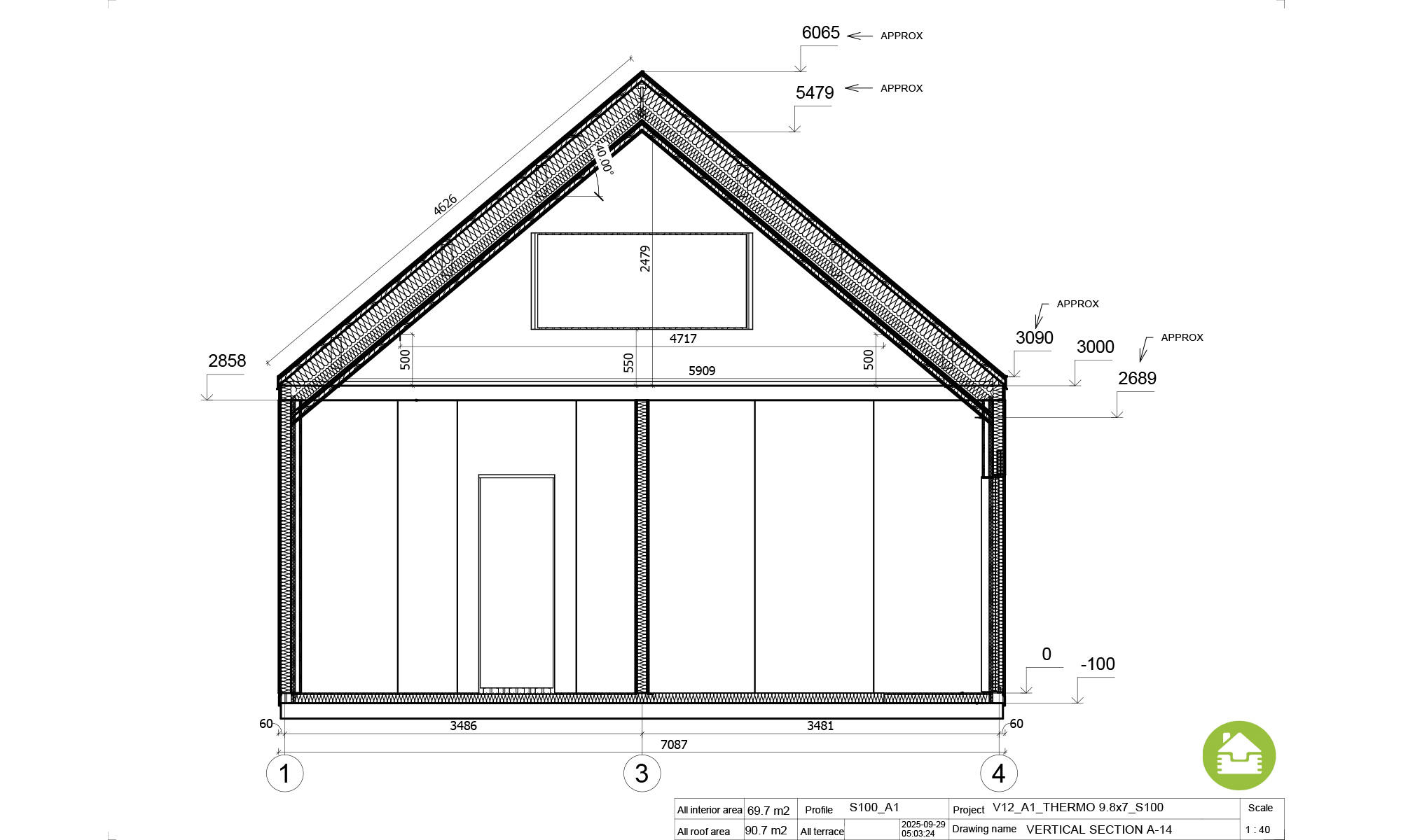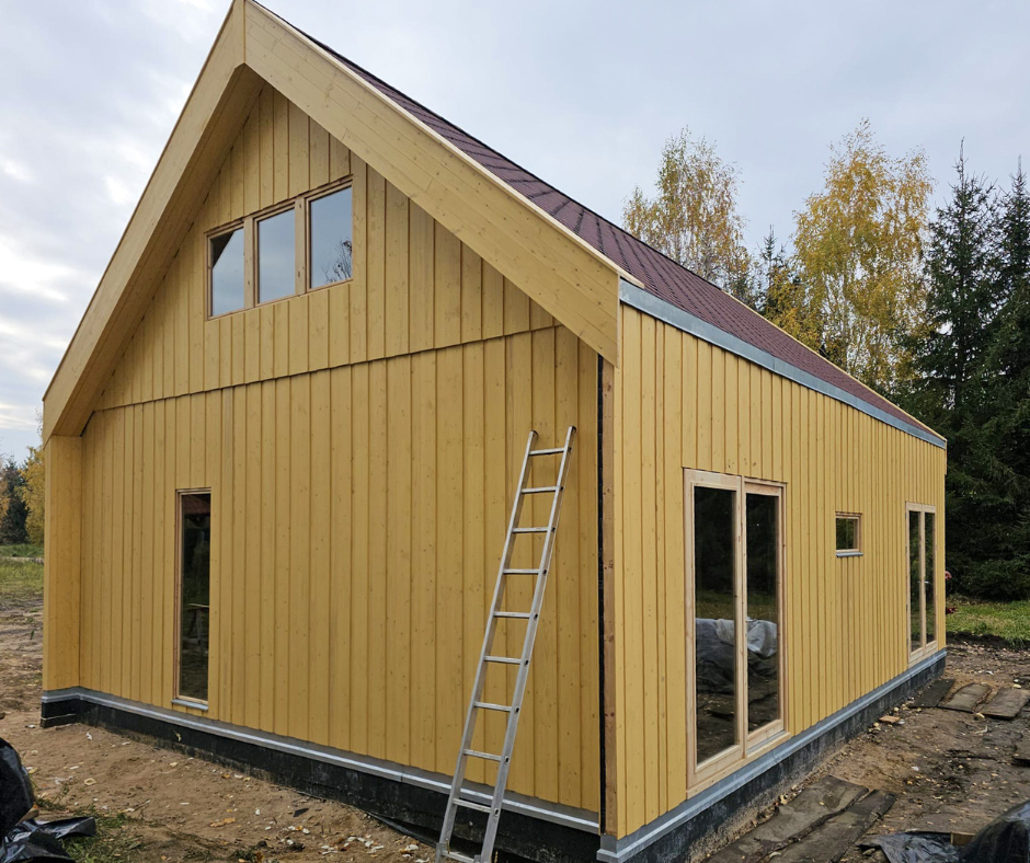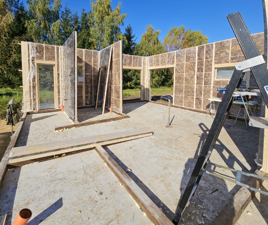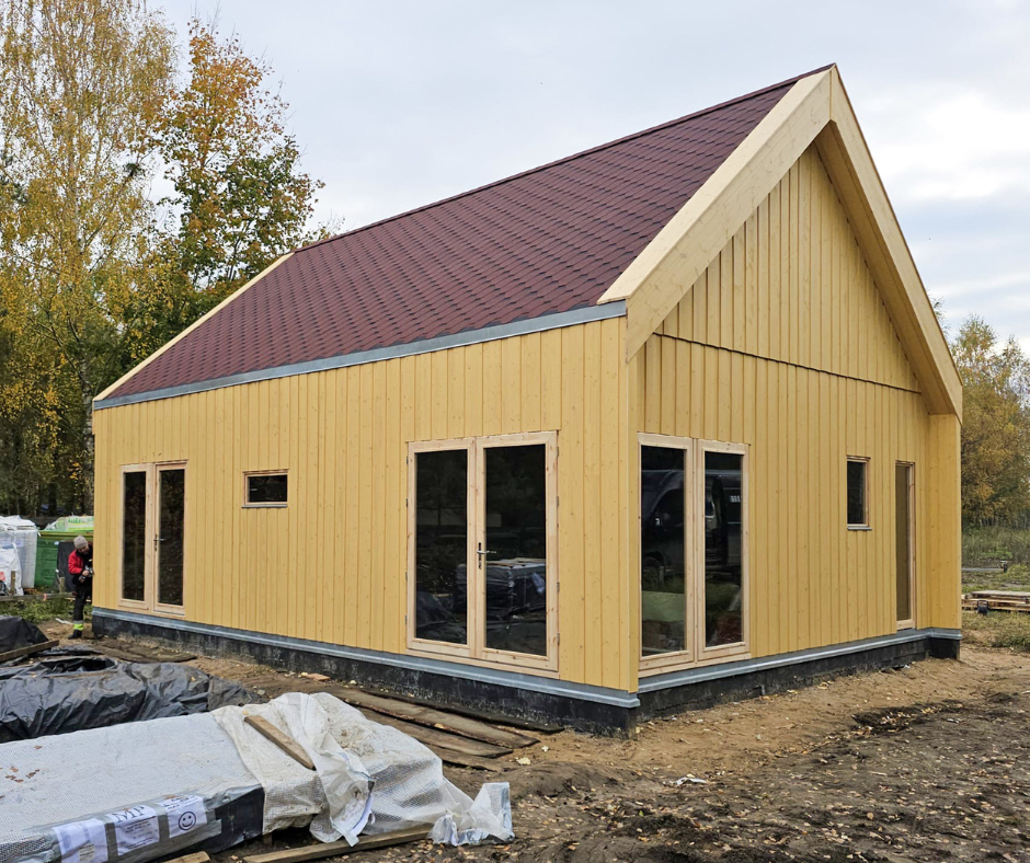 Konstrukcja domu oparta jest na nowoczesnych rozwiązaniach z prefabrykowanych modułów, co umożliwia szybki montaż – nawet w 4–5 tygodni wraz z pełnym wykończeniem wnętrz.