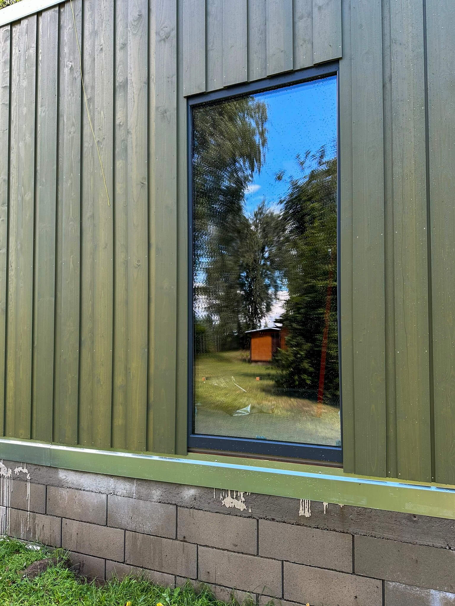 Dom oferuje również możliwość wyboru między PVC a drewnianymi oknami, co pozwala na zachowanie równowagi między estetyką a funkcjonalnością. Malowana elewacja dostępna w różnych kolorach pozwala na pełną personalizację i dopasowanie do otoczenia, nadając domowi unikalny charakter.