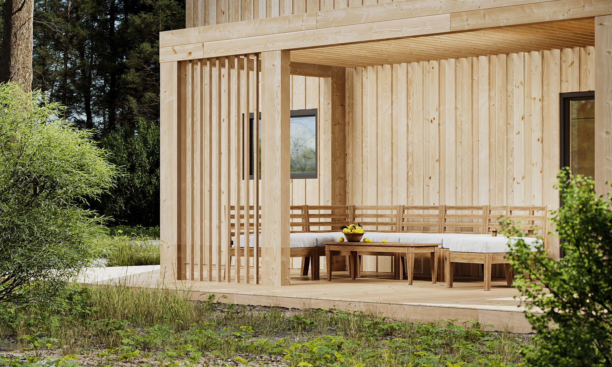 Dom w standardzie jest bardzo dobrze ocieplony, a wersja Premium Pro przekracza normy dla domów szkieletowych całorocznych WT 2021. Przemyślany układ z parterem, piętrem, balkonem i pergolą zapewnia komfort codziennego życia.
