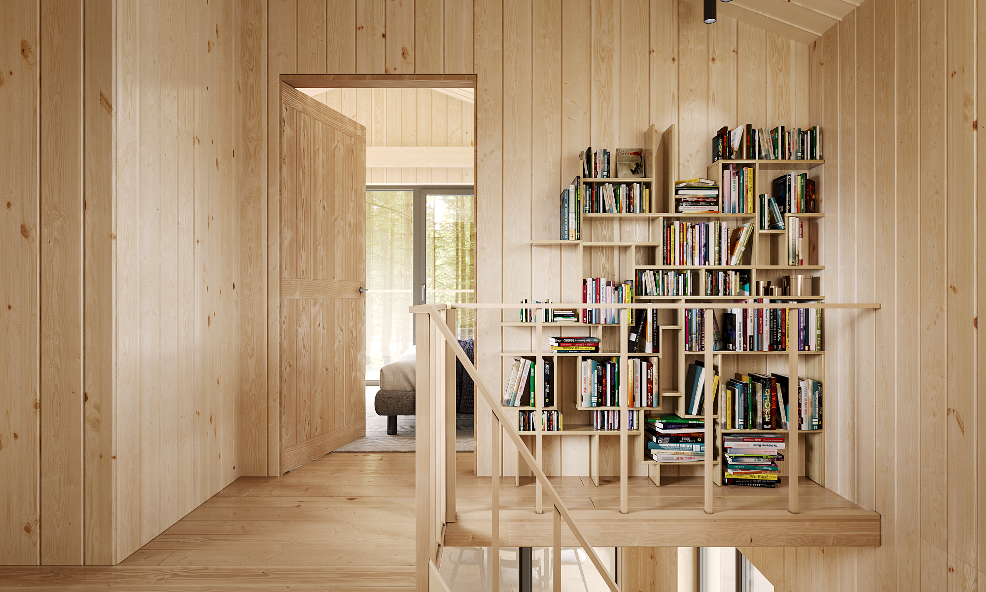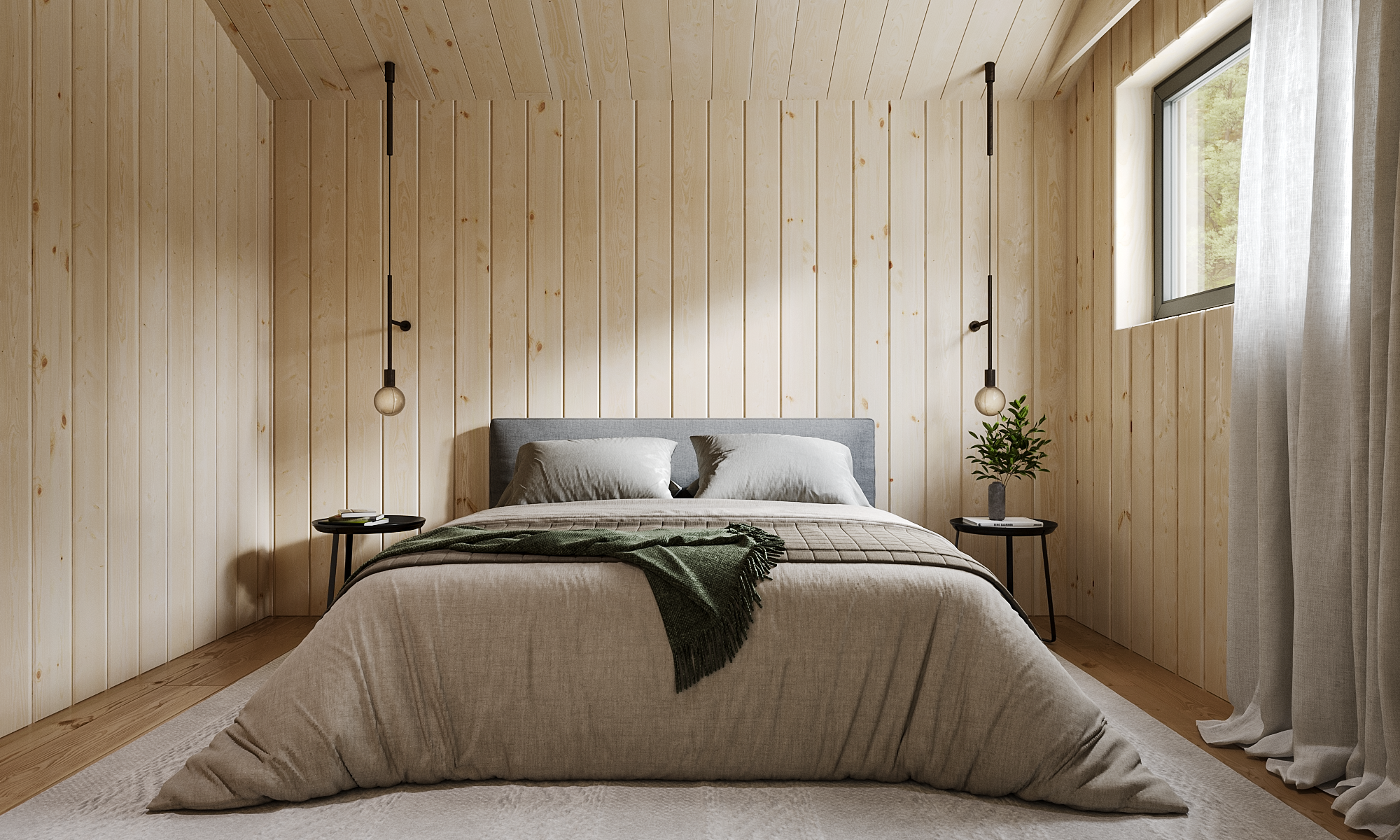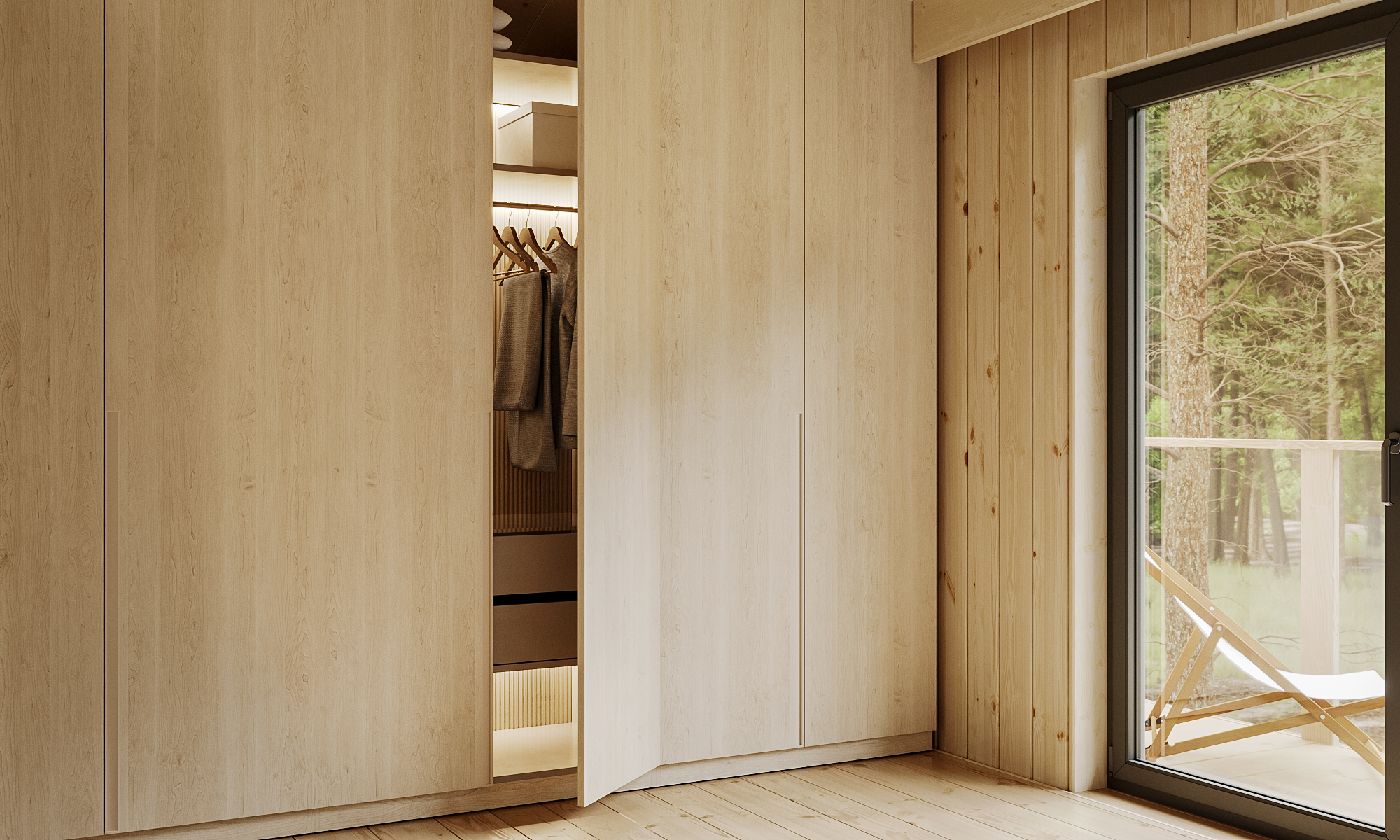 Dom powstaje z prefabrykowanych elementów, co zapewnia szybki montaż – z pełnym wykończeniem wnętrz nawet w 4–5 tygodni.