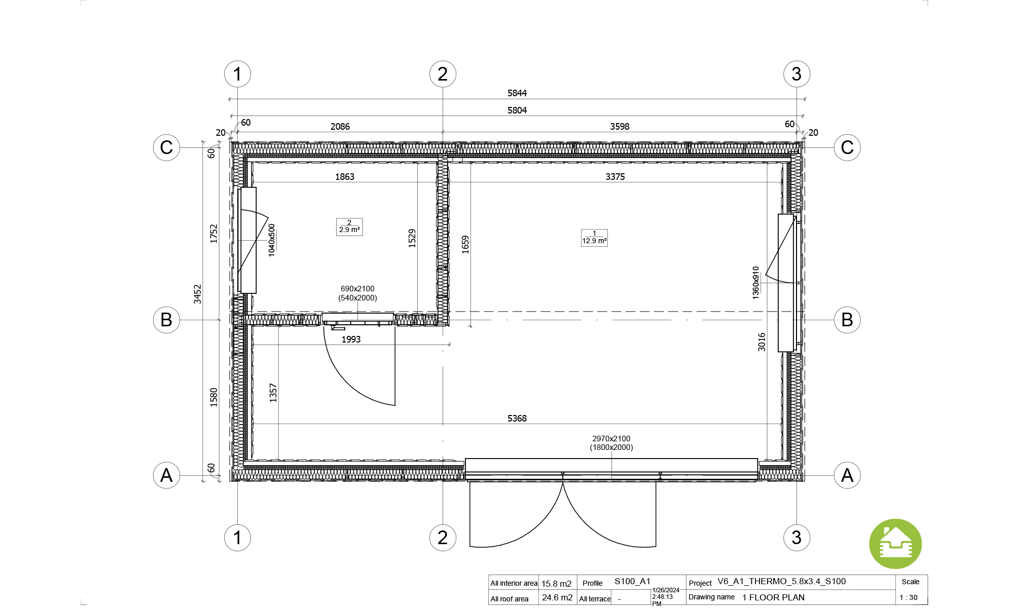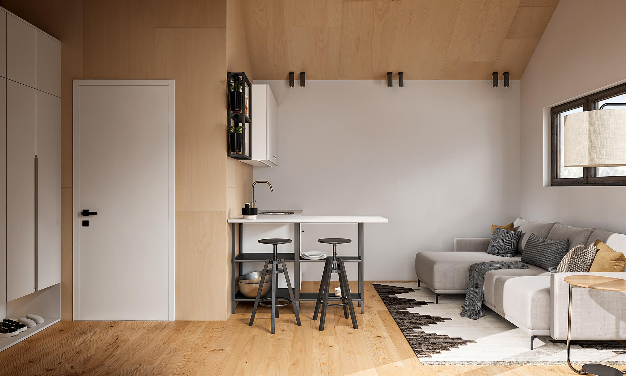 Dzięki zastosowaniu modułowych prefabrykowanych ścian montaż domku można wykonać w mniej niż tydzień – z pełnym wykończeniem wnętrza! To oznacza szybkie, wygodne i ekonomiczne rozwiązanie dla każdego, kto marzy o własnej przestrzeni.