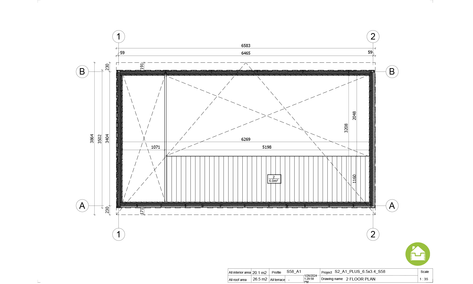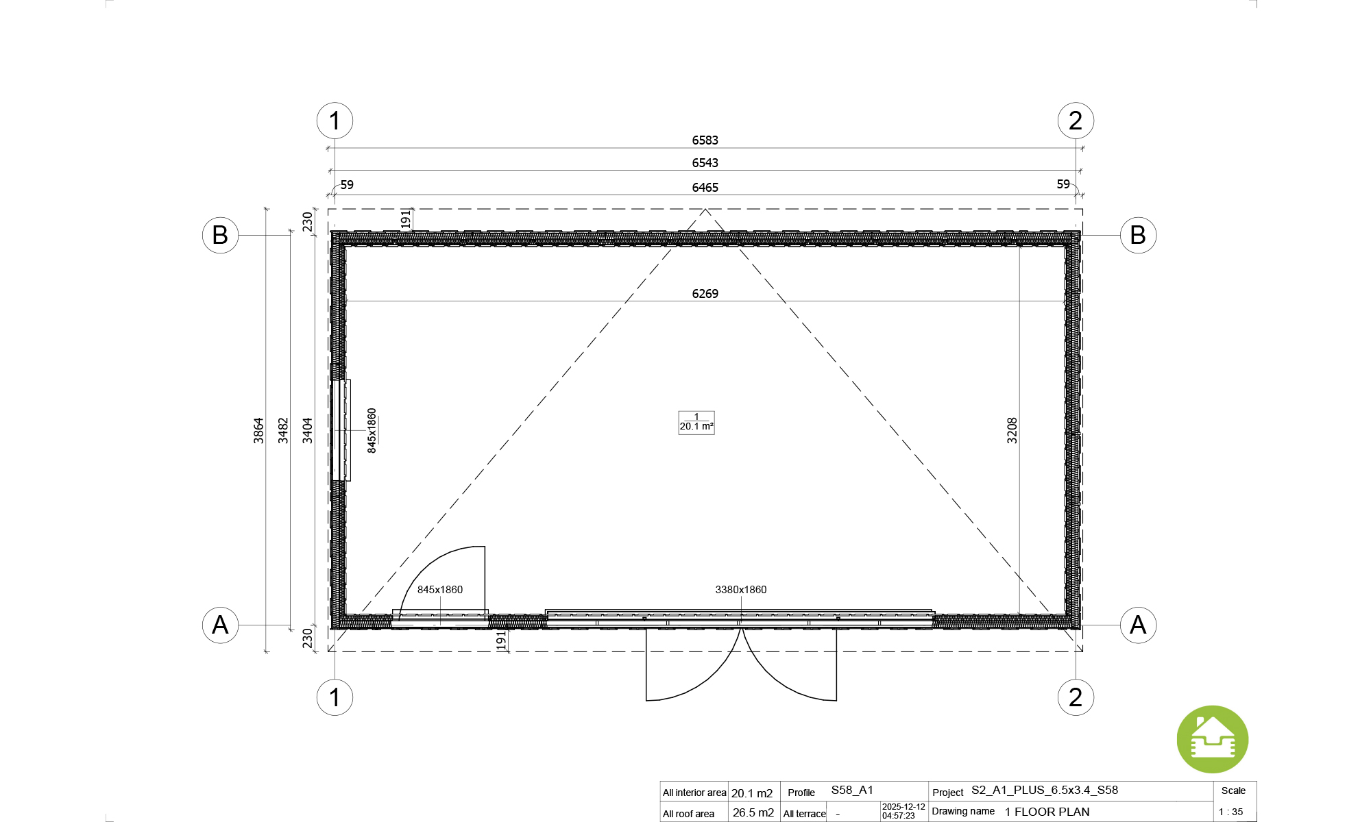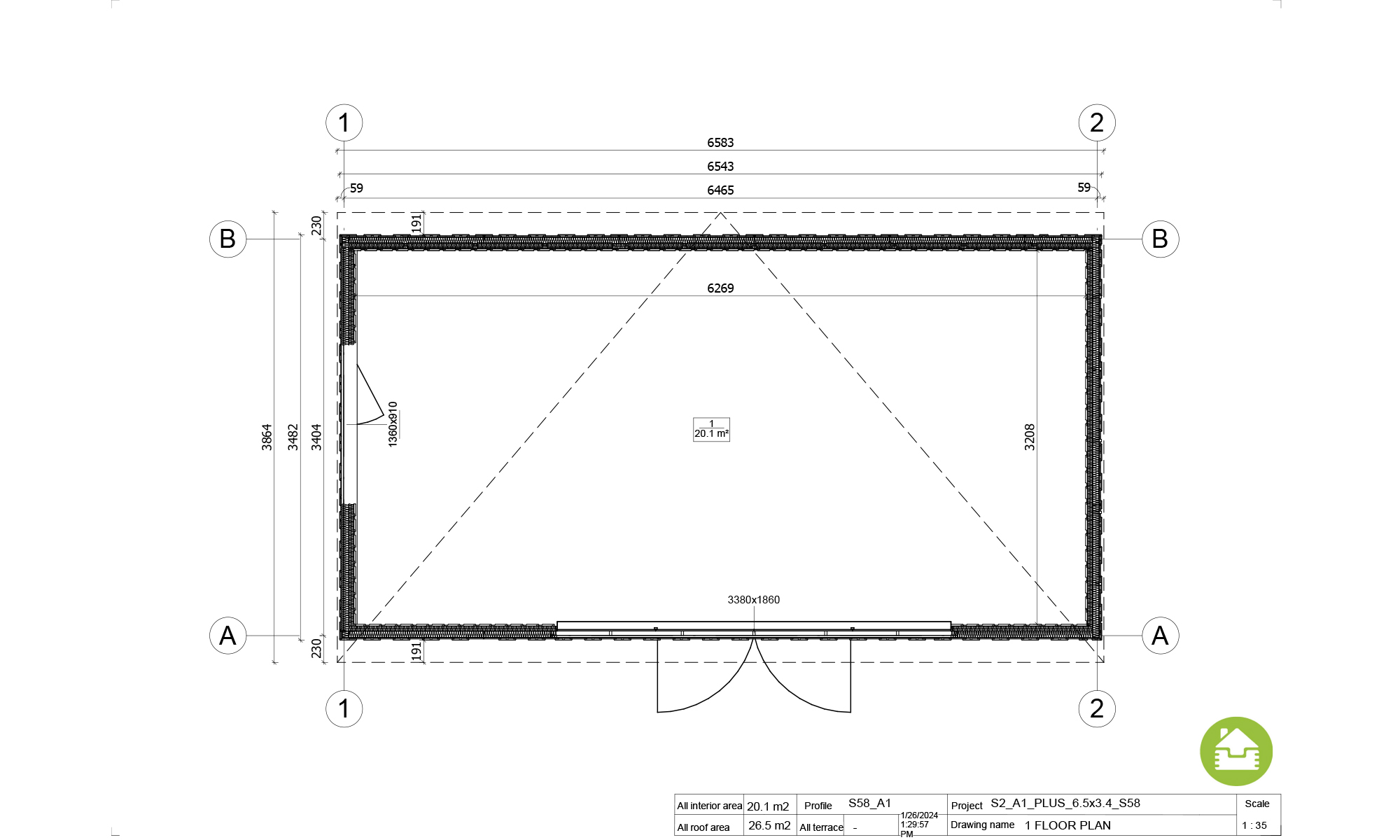 Model Tuszyn S2_A1 o powierzchni 20 m² to doskonałe rozwiązanie jako domek letniskowy, biuro, pracownia lub siłownia. Dzięki nowoczesnemu designowi harmonijnie wpasuje się w każdą przestrzeń, pełniąc zarówno funkcję praktyczną, jak i estetyczną ozdobę posesji.