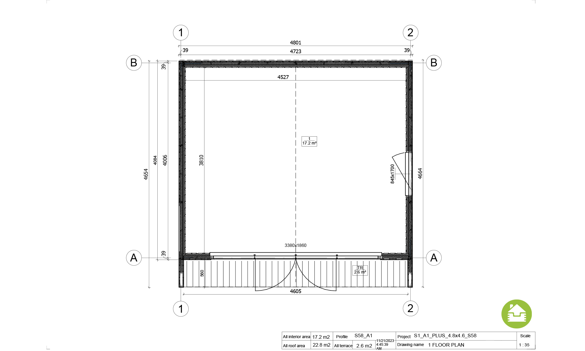 Model Warta S1_A1 o powierzchni użytkowej 17,2 m² to idealny wybór, jeśli szukasz funkcjonalnego i estetycznego rozwiązania na każdą działkę. Ten domek letniskowy całoroczny sprawdzi się jako wygodne miejsce na wypoczynek, przydomowe biuro, kreatywna pracownia czy nawet siłownia.