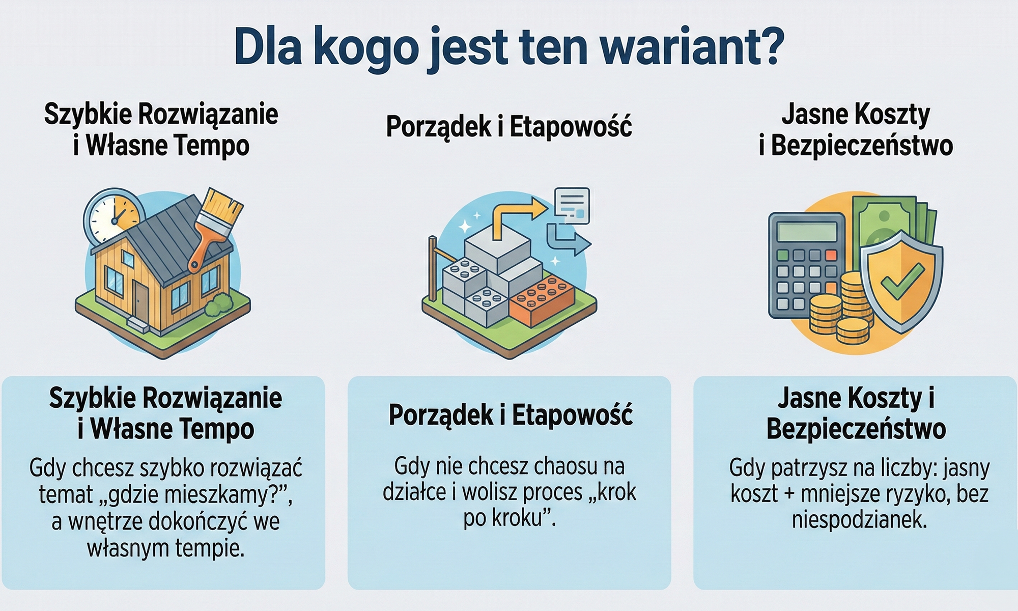 • Gdy chcesz szybko rozwiązać temat „gdzie mieszkamy?”, a wnętrze dokończyć we własnym tempie.