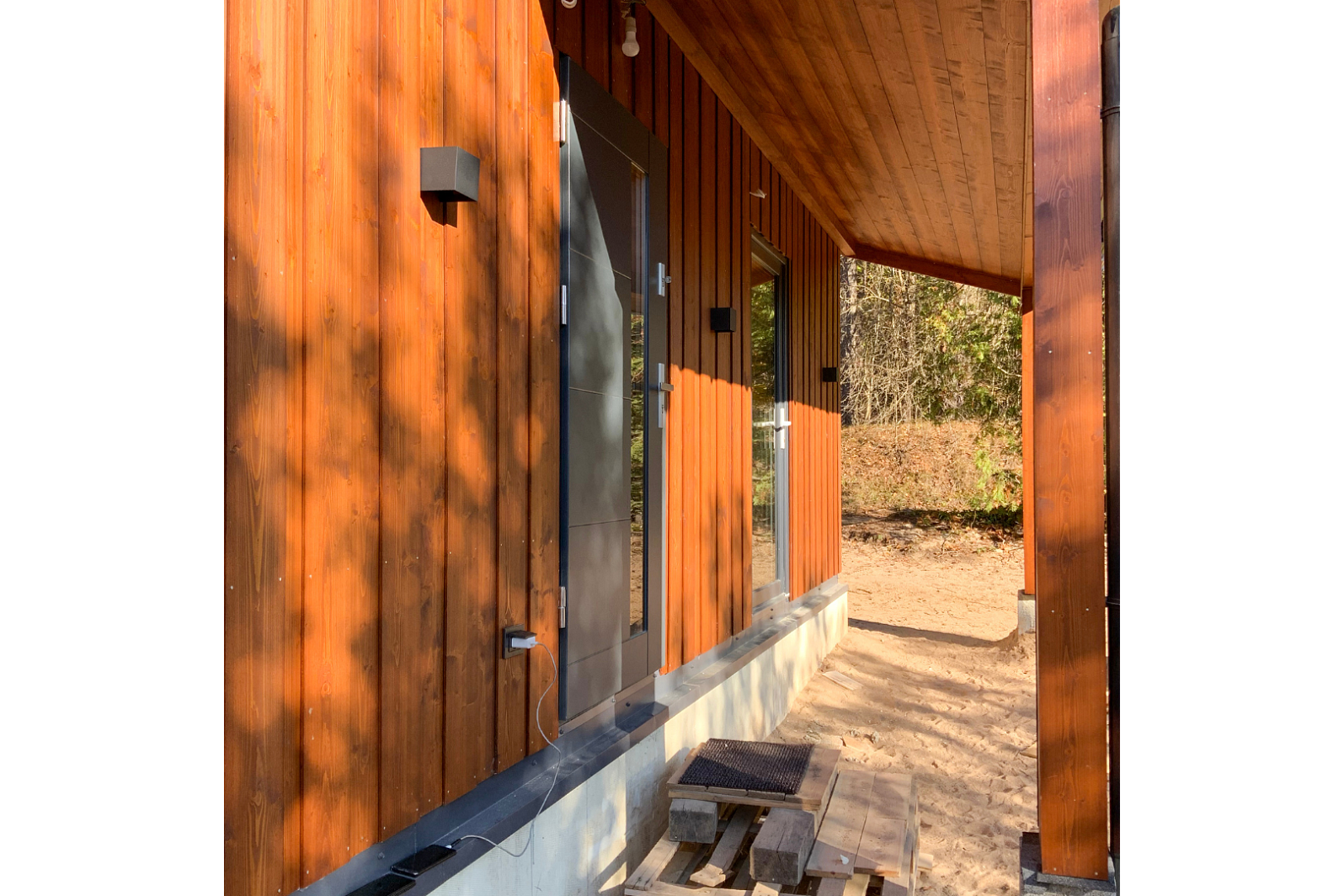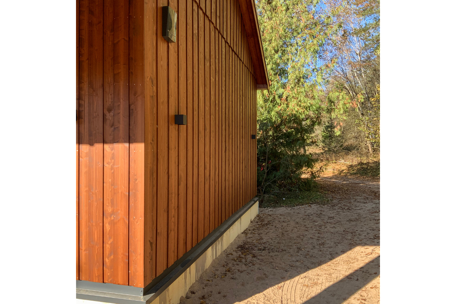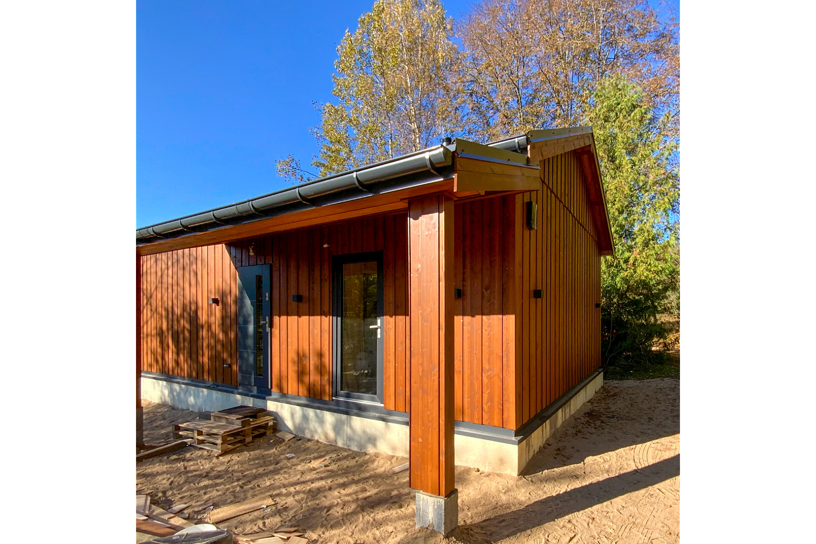 Dom wykonany z najwyższej jakości drewna, z fabrycznie wykończoną elewacją w kolorze wybranym przez klienta. Wnętrze pozostawione w stanie naturalnym, umożliwiającym dowolną aranżację, a wszystkie instalacje (elektryczne, wodne i kanalizacyjne) zostały w pełni przygotowane.
