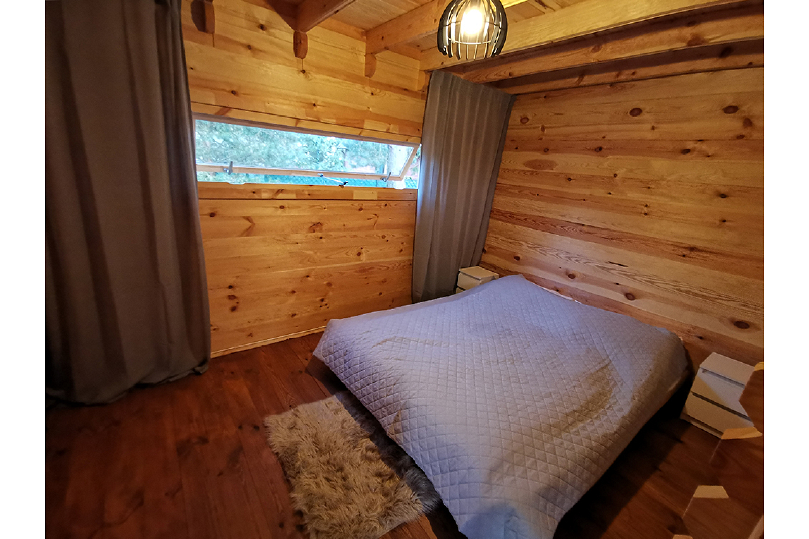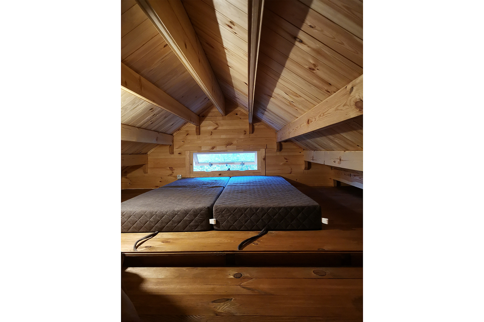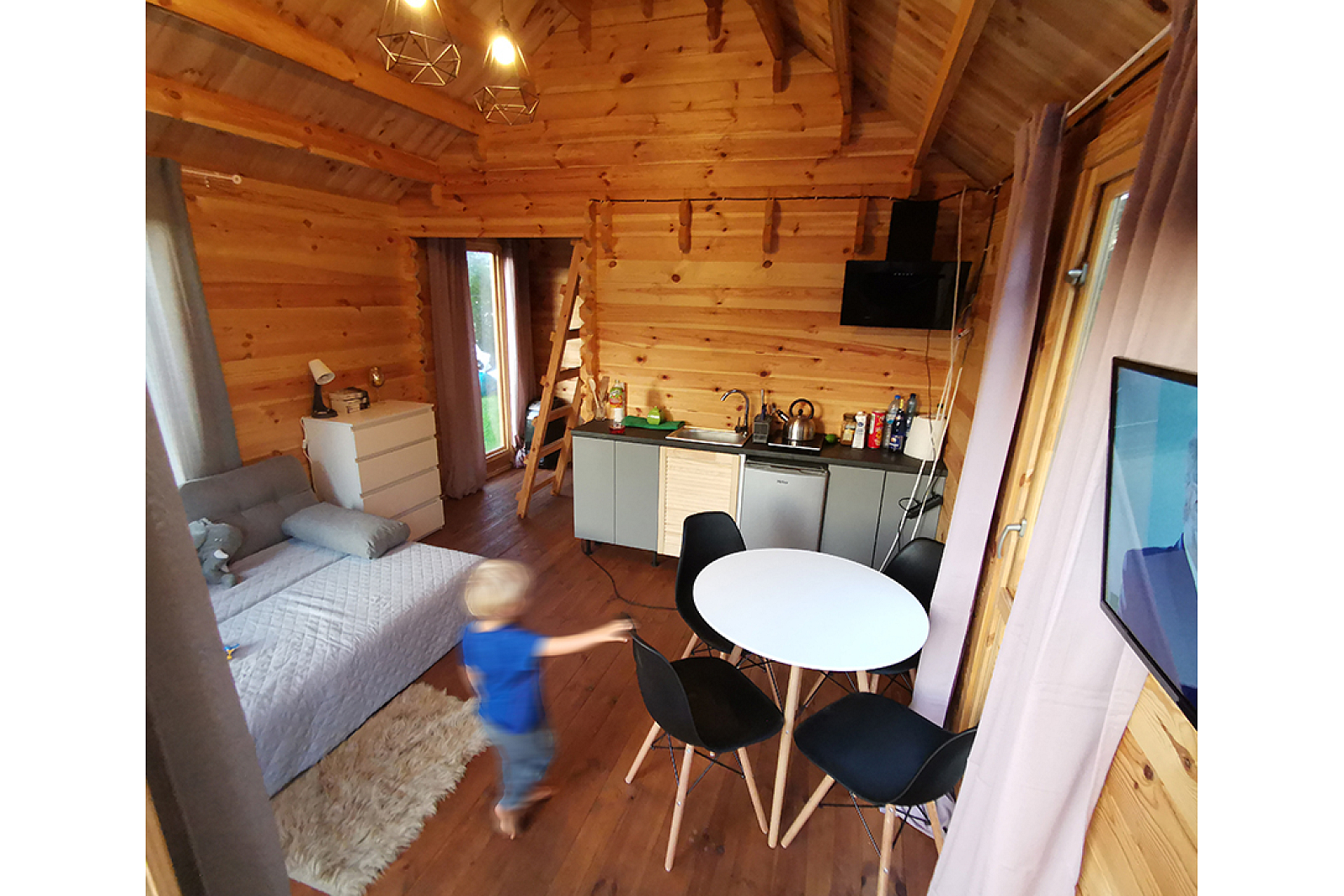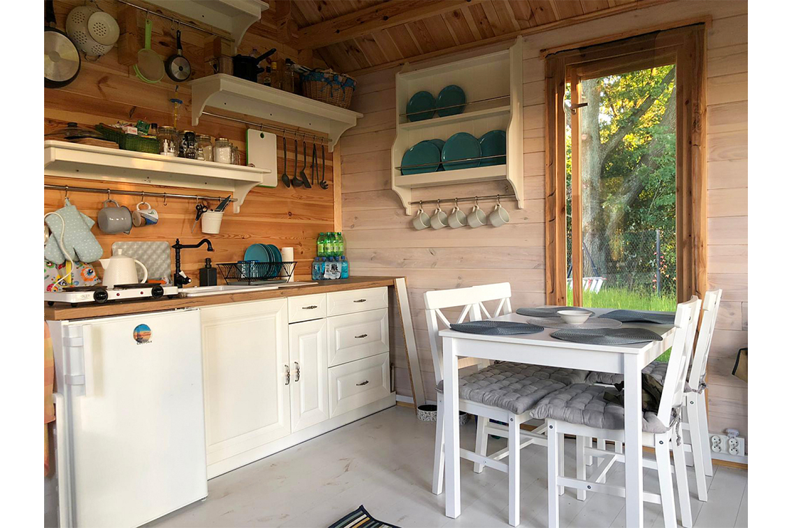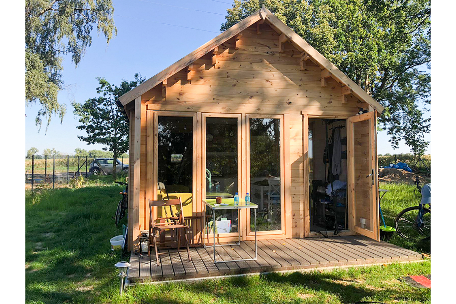 Świetnie splanowany domek letniskowy 35 m² jest przystosowany dla różnych rodzinnych potrzeb. W tym ekologicznym domku są cztery oddzielne pomieszczenia (salon, sypialnia, magazyn i łazienka). Domek jest splanowany tak, aby była przestrzeń dla kuchni i spiżarni, w ktorej są dwa wejścia (wewnętrzne i zewnętrzne). Całkowicie zaszklone dwuskrzydlowe okna zapewnią dobre oświetlenie pokojów nawet w zachmurzone dni. To jest świetne rozwiazanie dla tych, co szukają optymalnie splanowane miejsce relaksu dla siebe i swoich gości. Projekt może być stosowany jako kemping albo ośrodek rekreacyjny.