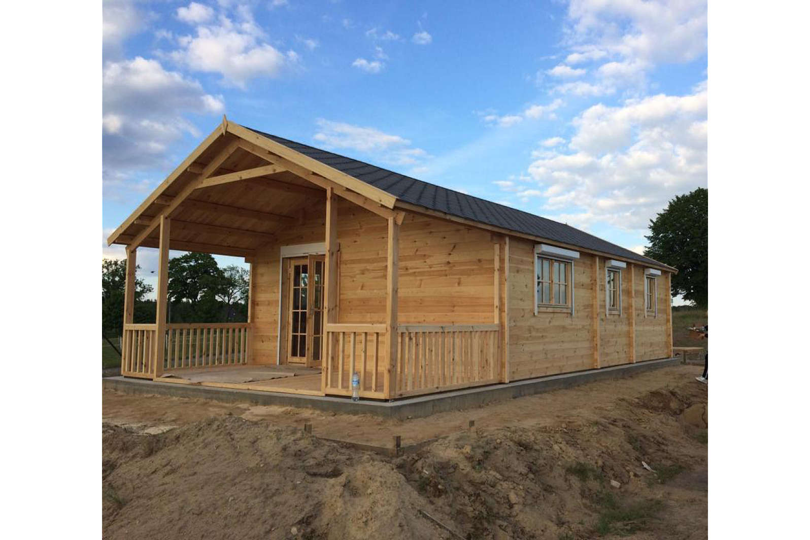 Przestrzenny oraz świetnie splanowany domek letniskowy 65 m² jest całkowicie przystosowany dla potrzeb każdej rodziny. W ekologicznym domku są urzadzone cztery oddzielne pomieszczenia (pokój dzienny, dwie sypialnie i łazienka). Domek jest sprojektowany tak, aby wmieścić niemałą kuchnię. Całkowicie zaszklone drzwi i okna zapewnią dobre oświetlenie wewnętrza nawet w pochmurne dni. To jest swietnym rozwiazaniem dla tych, ktorzy potrzebują optymalne splanowanego domku dla siebie i swoich gosci. Projekt takze może być stosowany jako kemping lub ośrodek rekreacyjny. Domek wykonany z prostych elemntow konstruckcji, dlatego jest łatwo montowany.