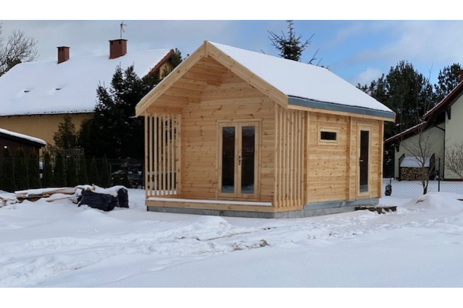 Model Rajsk VSP29 to nieduży, lecz świetnie rozplanowany ekologiczny domek drewniany o powierzchni użytkowej niemal 25m2 oraz ponad 5m2 zadaszonego tarasu przy wymiarach zewnętrznych nieprzekraczających 4x6 metrów. Utrzymany w nowoczesnym stylu idealnie wkomponuje się zarówno na niedużą działkę ROD, jak też w obszary leśne czy przyjeziorne, zapewniając przestrzeń wypoczynkową całej rodzinie. Dodatkowo możemy mieć pewność o wyjątkowości zamówionego domku, gdyż znacznie różni się od typowych, ciągle powtarzających się budynków. Na parterze do dyspozycji jest przestronna kuchnia z pokojem dziennym oraz łazienka, zaś na antresoli obszerna przestrzeń sypialna. Dodatkowym atutem jest również panujący wewnątrz nieprzemijający aromat syberyjskiego lasu sosnowego, dzięki któremu wypoczynek będzie jeszcze bardziej niezwykły. Domek jest wykonany z prostych elementów konstrukcji, dlatego też jego łatwy montaż może stać się również dobrą, urlopową zabawą.