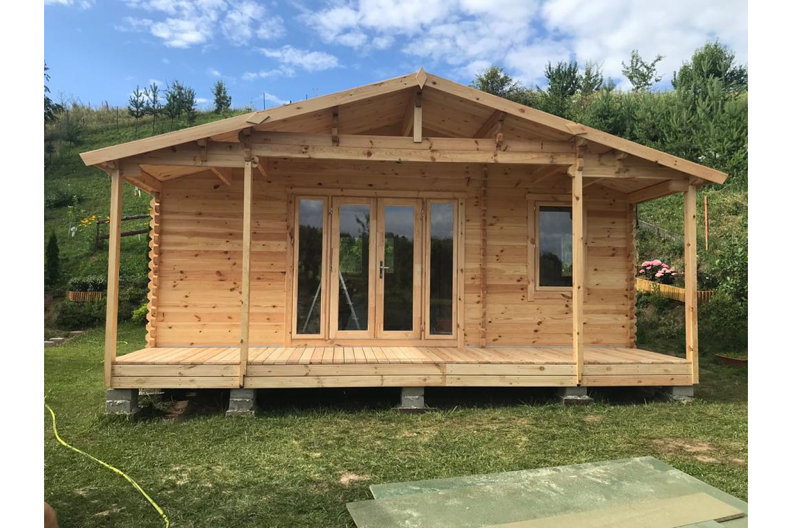 Nieduży, ale dobrze splanowany domek letniskowy 38 m², w którym możecie cieszyć się pięknym letnim dniem wśród przyrody. To jest dobre rozwiązanie dla tych, którzy chcą rozmieścić swoich gości w ośrodkach wypoczynkowych. Wewnętrze domku może być splanowane według waszych indywidualnych potrzeb. Ekologiczny projekt z całkowicie zadaszonym tarasem, idelanie ochroni od deszczu albo gorących słonecznych promieni. Domek wykonany z prostych elementow konstruckcji, dlatego jest łatwo montowany.