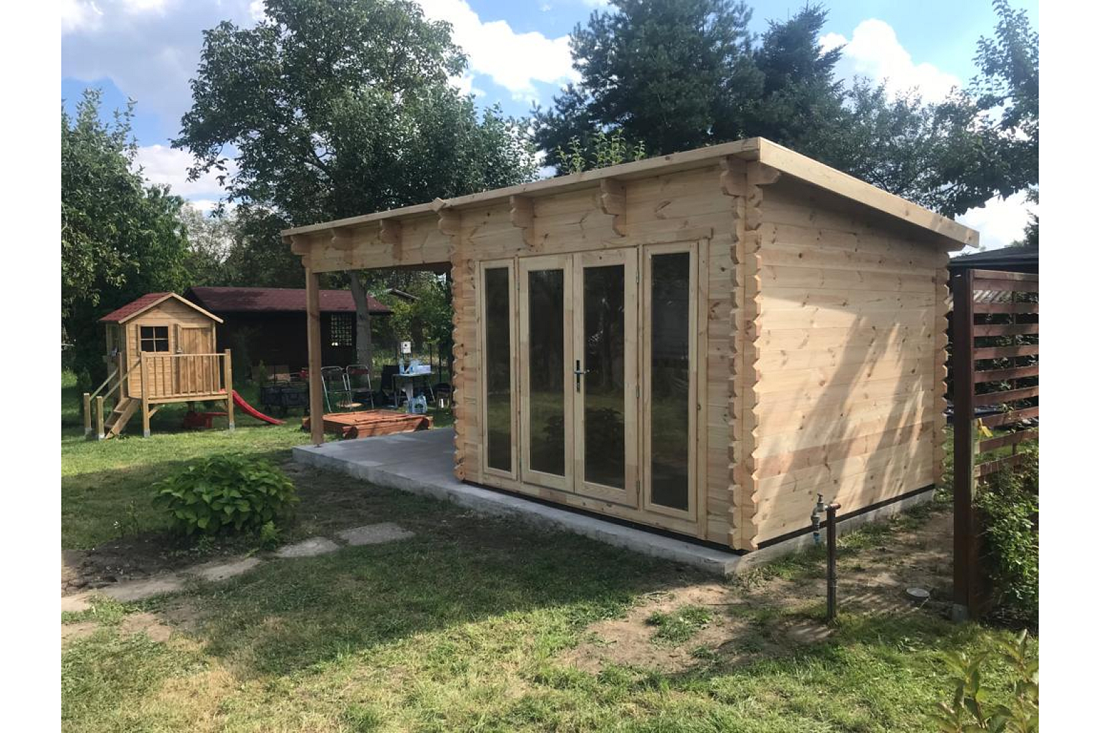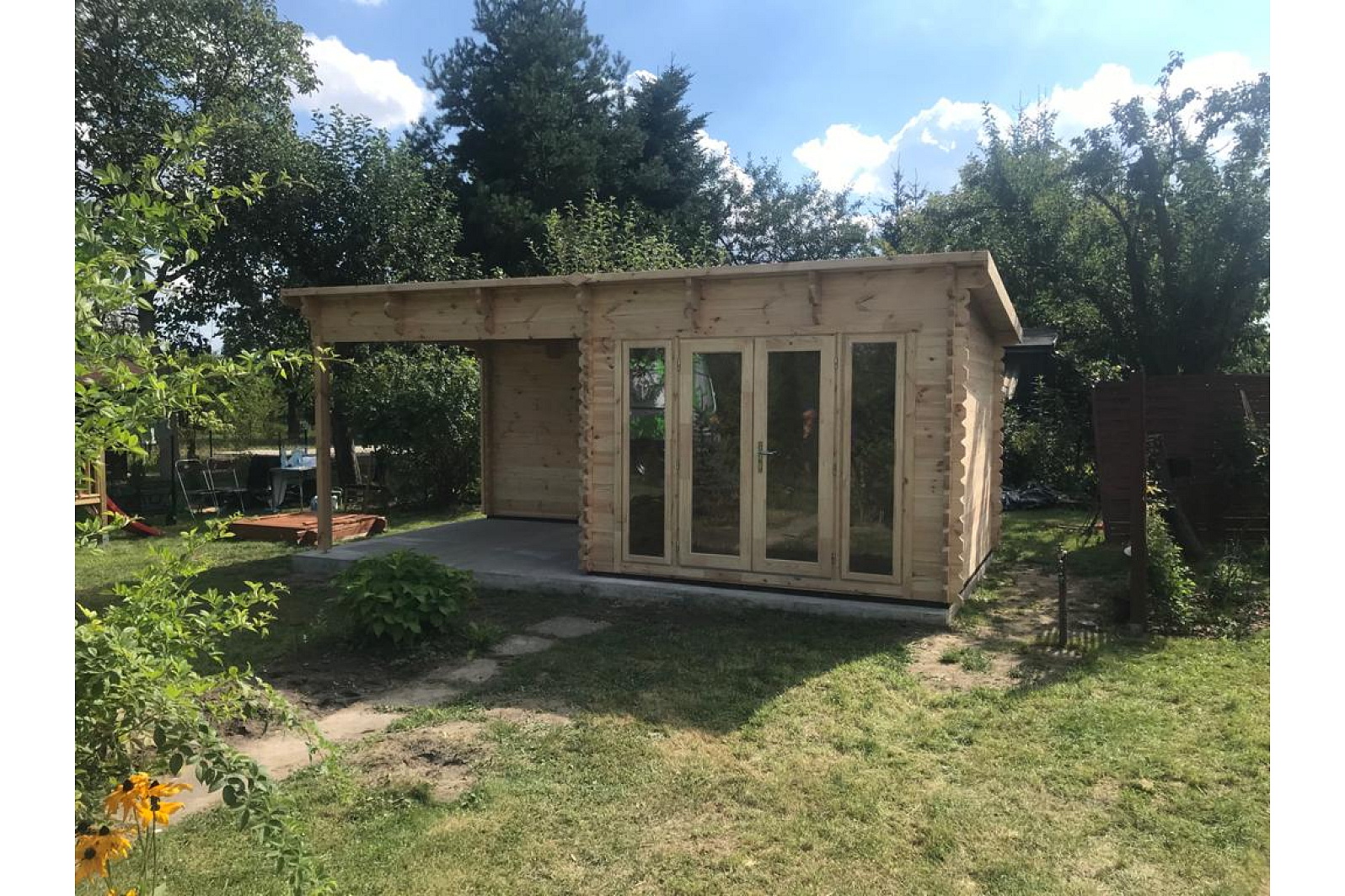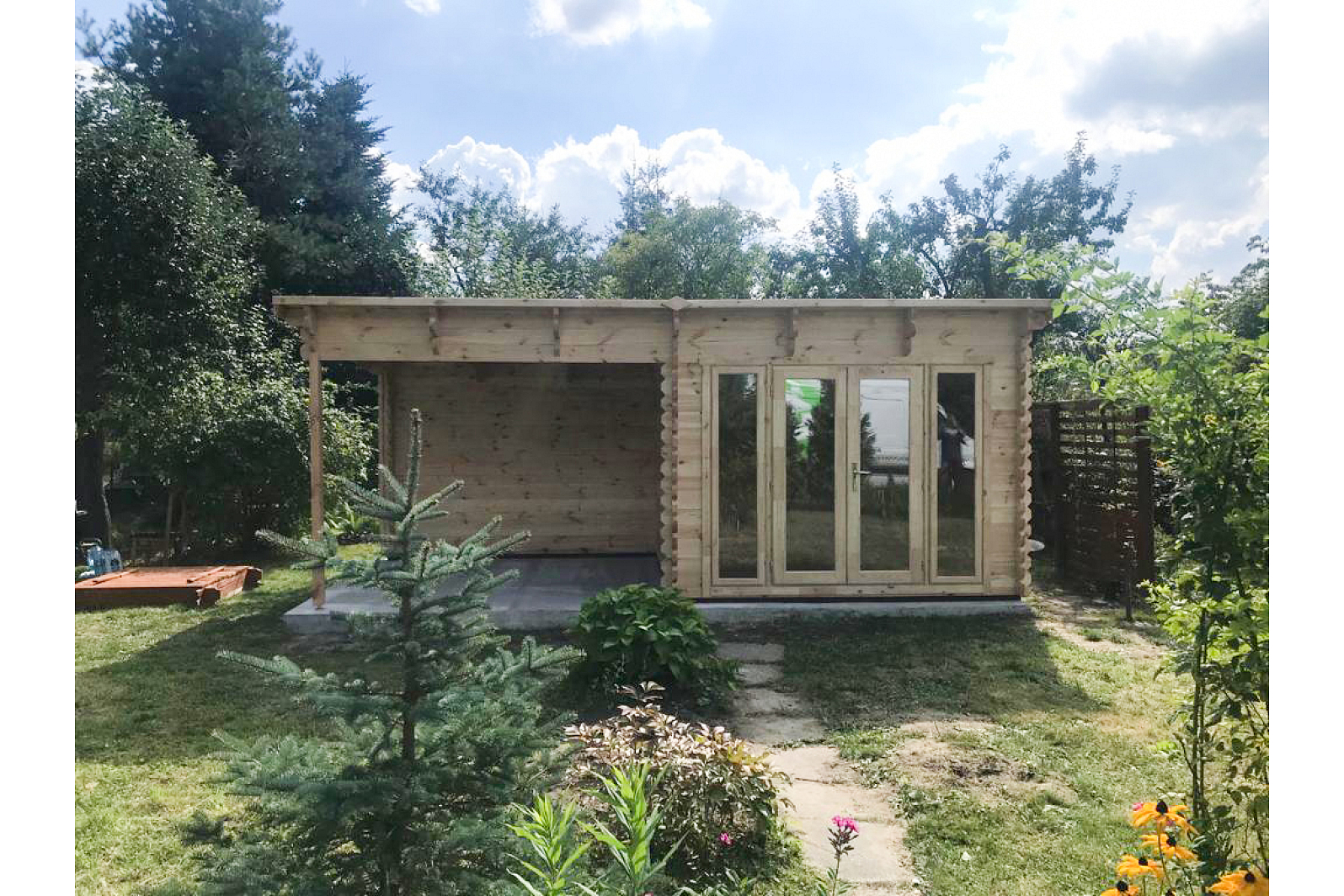 Ten nieduży domek letniskowy 18 m² upiększy wasz podwórek. W całkowicie zadaszonej werandzie możecie spędzać czas przy każdej pogodzie. Wielkie i całkowicie zaszklone okna dodają wewnętrzu przestrzeni i światła, a przez dwuskrzydłowe drzwi będzie łatwo wnosić i wynosić meble wielkich wymiarów. Ekologiczny domek jednospadowy może być dołączony do ściany domu albo większego płotu, oszczedzając przestrzeń podwórka. Domek ma prostą konstrukcję, dlatego jest łatwo go zmontować.