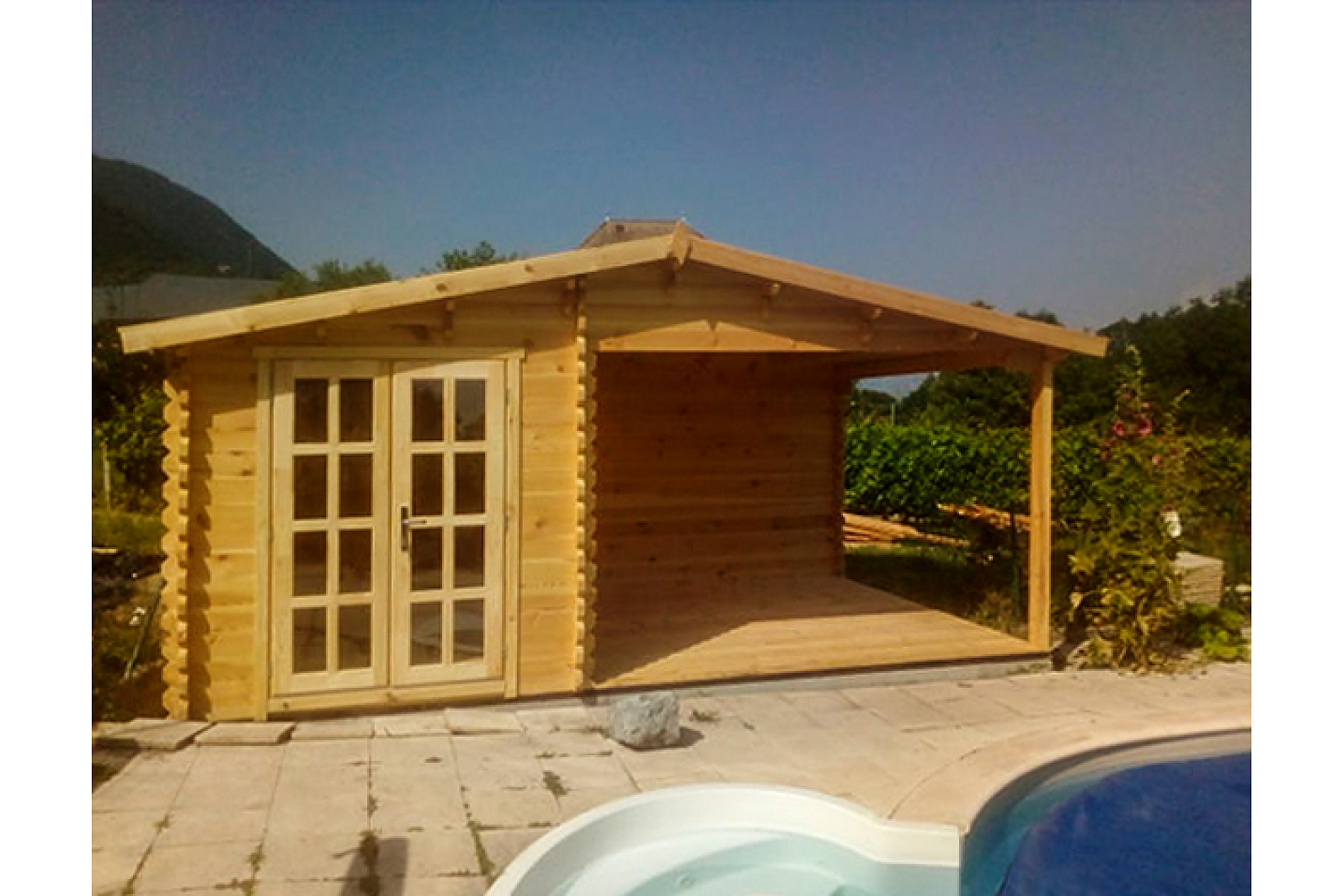 Nieduży, klasycznego stylu domek ogrodowy 13 m² idealnie pasuje dla niedużego podwórka. W pełni zadaszona weranda ochroni przed deszczem albo od gorących promieni słonecznych. W zestaw wchodzą jednoskrzydłowe, zaszklone drzwi i okno. Wnętrze domku można urządzić według swojej wizji (ośrodek rekreacyjny, mini biuro, maganzyn dla sprzęntu gospodarstwa domowego).
