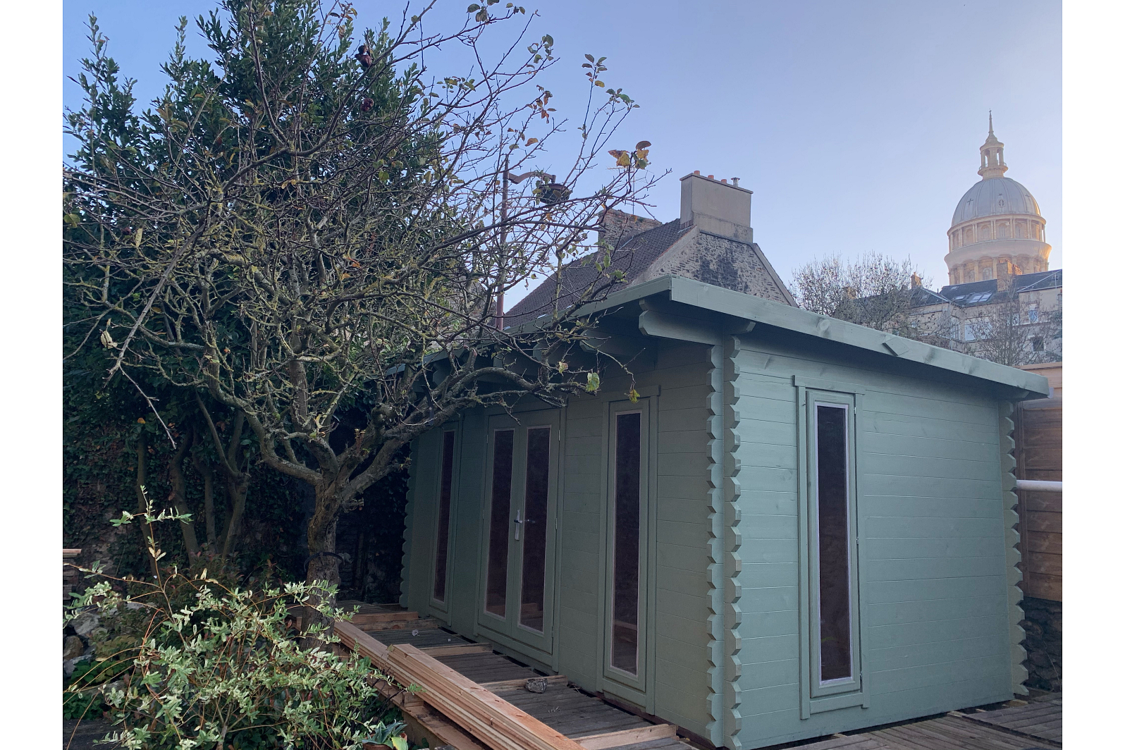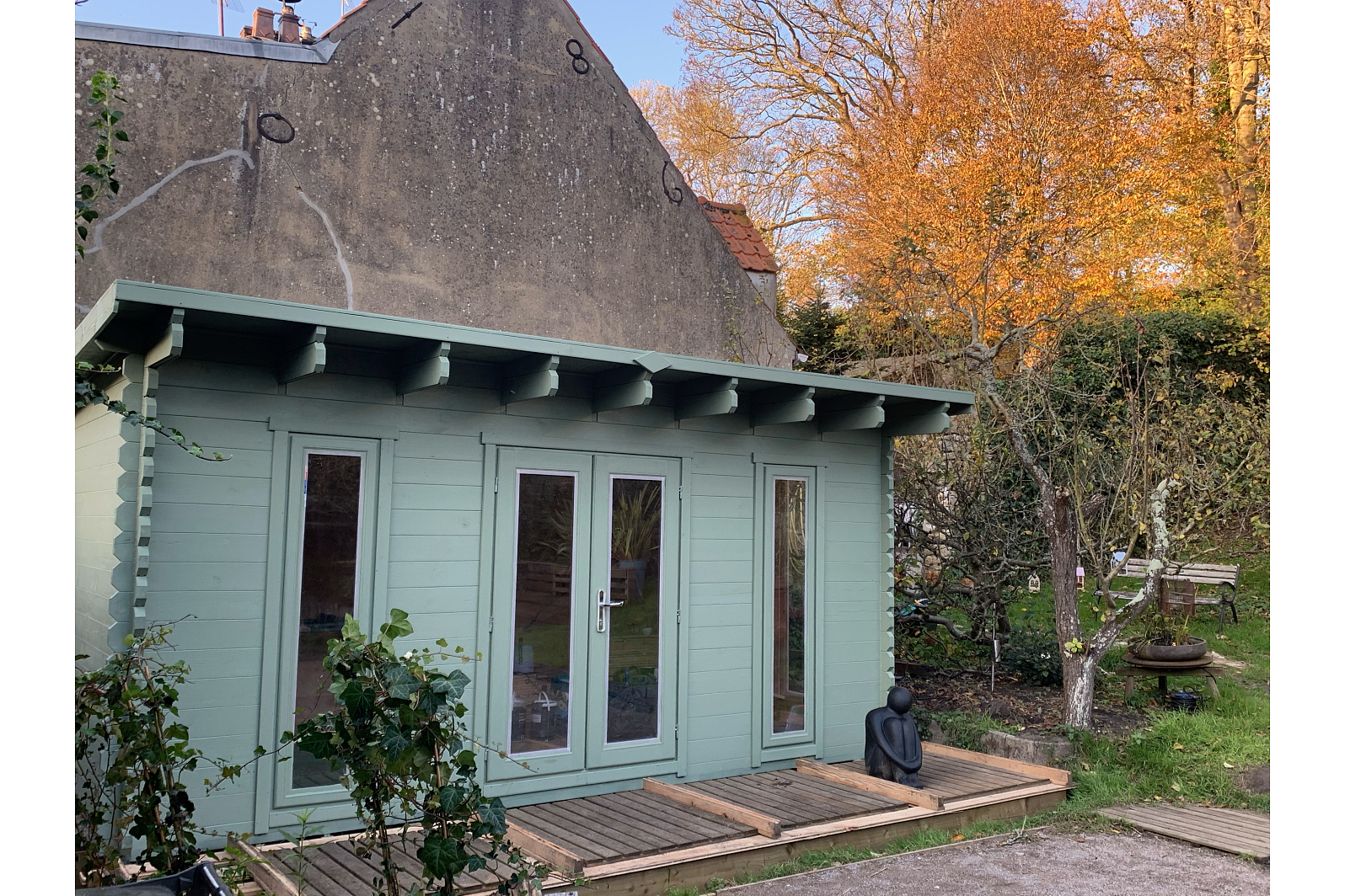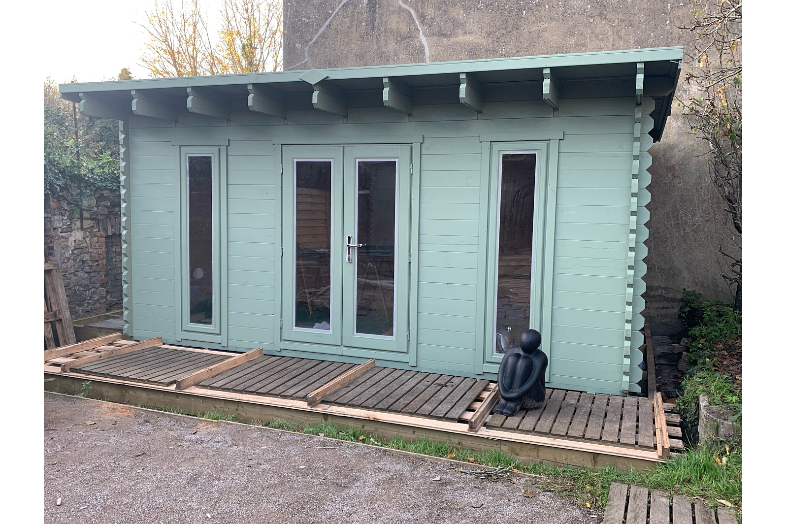 Przestrzenny, nowoczesnego typu, jednospadowy domek ogrodowy 12 może być dostosowany do różnych potrzeb (to może być domek dla gości, biura, niedużej sali dla sportu lub nawet sklepiku). Ekologiczny jednospadowy domek zawiera duże zaszklone okna oraz całkiem zaszklone dwuskrzydłowe drzwi, które zapewnią dostateczne oświetlenie wewnętrz oraz ergonomię. Domek jest łatwo zmontować ze względu na prostą konstrukcję.