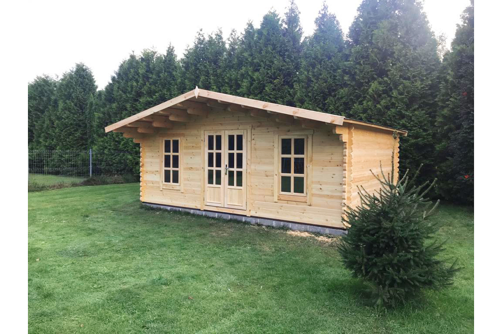 Ładny, ekologiczny domek ogrodowy od 12 do 24 m² świetnie ożywi wasz podwórek albo brzeg jeziora. Domek może być przystosowany dla różnych potrzeb klienta (może być stosowany jako domek dla gości, mini biuro, albo oddzielne miejsce rekreacyjne). Zadaszona weranda idelanie ochroni przed deszczem albo od bezpośrednich słonecznych promieni w gorący letni dzień. Całkowicie zaszklone okna i dwuskrzydłowe drzwi zapewnią odpowiednie oświetlenie niezależnie od pogody. Projekt wykonany z prostej konstrukcji, dlatego łatwo się go montuje.