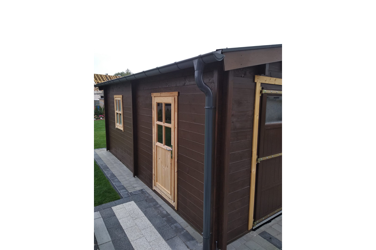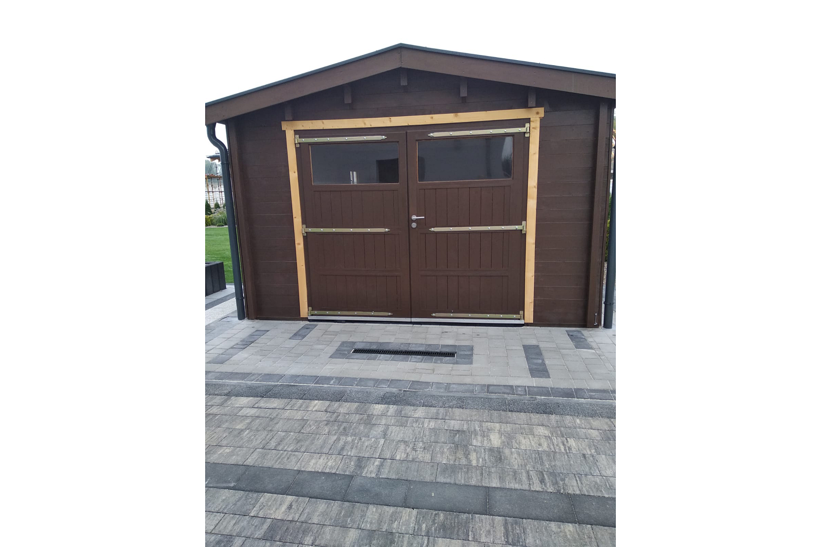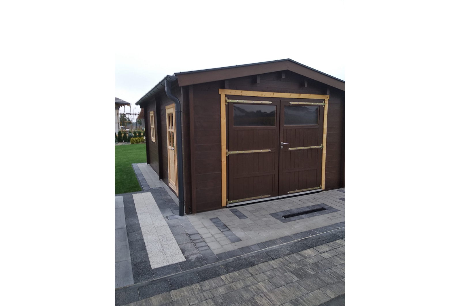 Ekologiczny budynek o klasycznym wyglądzie to idealne rozwiązanie dla osób szukających niedrogiego garażu 15 m² dla Twojego samochodu. Lekkim do zamontowania drewnianym garażu są boczne drzwi ze szkłem, które pomogą oświetlić wnętrze garażu, w którym są także w całości drewniane drzwi wjazdowe.