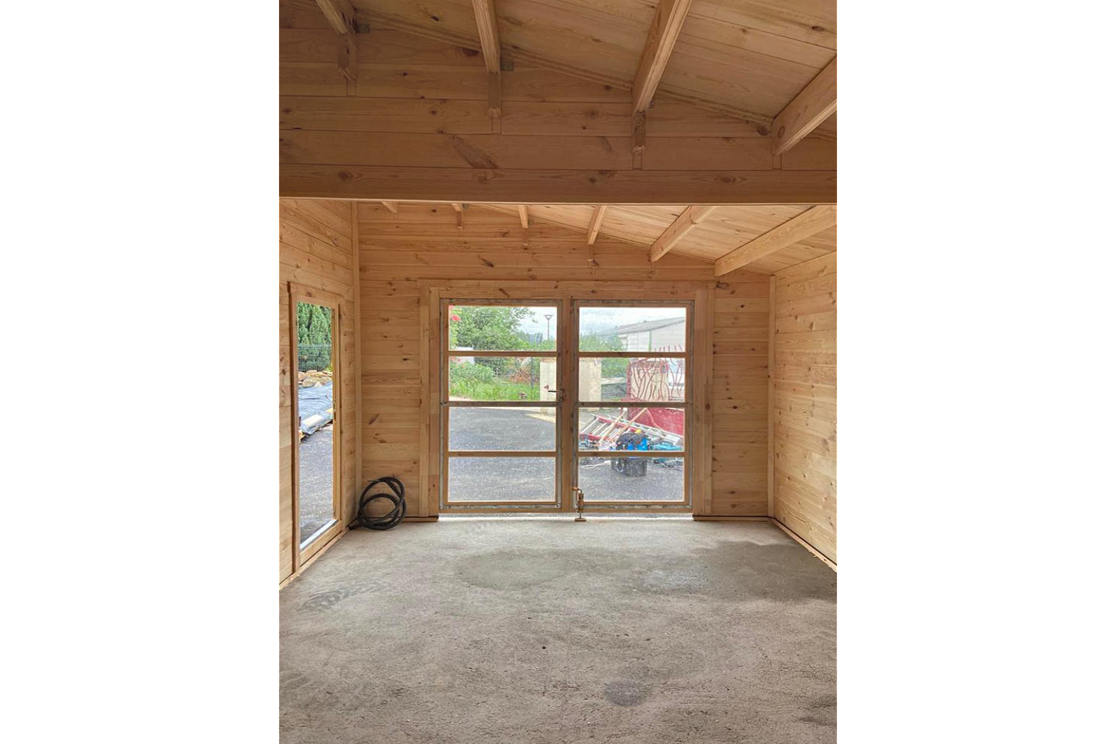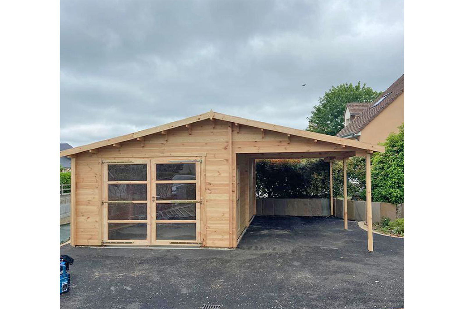 Ekologiczny garaż 42 m² z szopą jest idealny dla tych, którzy szukają połączonego rozwiązania dla swoich pojazdów. Boczne drzwi garażowe pozwolą w łatwy i wygodny sposób wejść do wnętrza budynku, a okna na ścianie zapewnią optymalną wydajność świetlną wewnątrz pomieszczeń, z pełnymi drewnianymi drzwiami garażowymi.