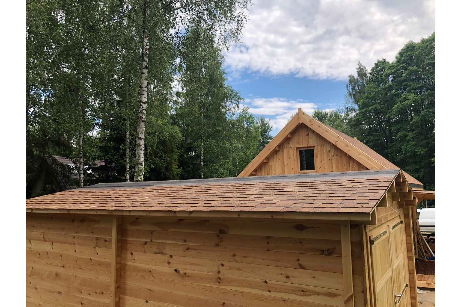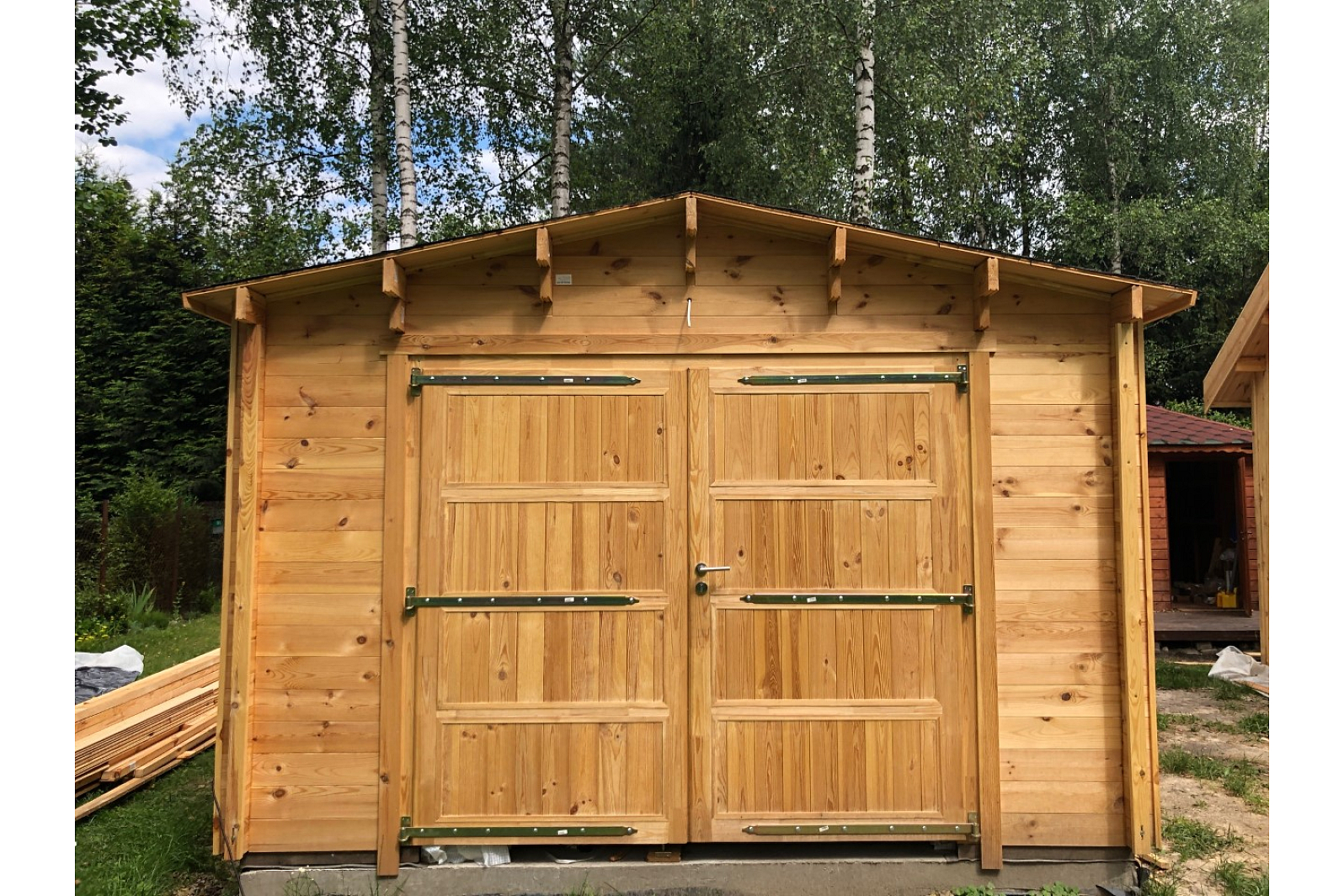 Ekologiczny budynek o klasycznym wyglądzie to idealne rozwiązanie dla osób szukających niedrogiego garażu 15 m² dla Twojego samochodu. Lekkim do zamontowania drewnianym garażu są boczne drzwi ze szkłem, które pomogą oświetlić wnętrze garażu, w którym są także w całości drewniane drzwi wjazdowe.