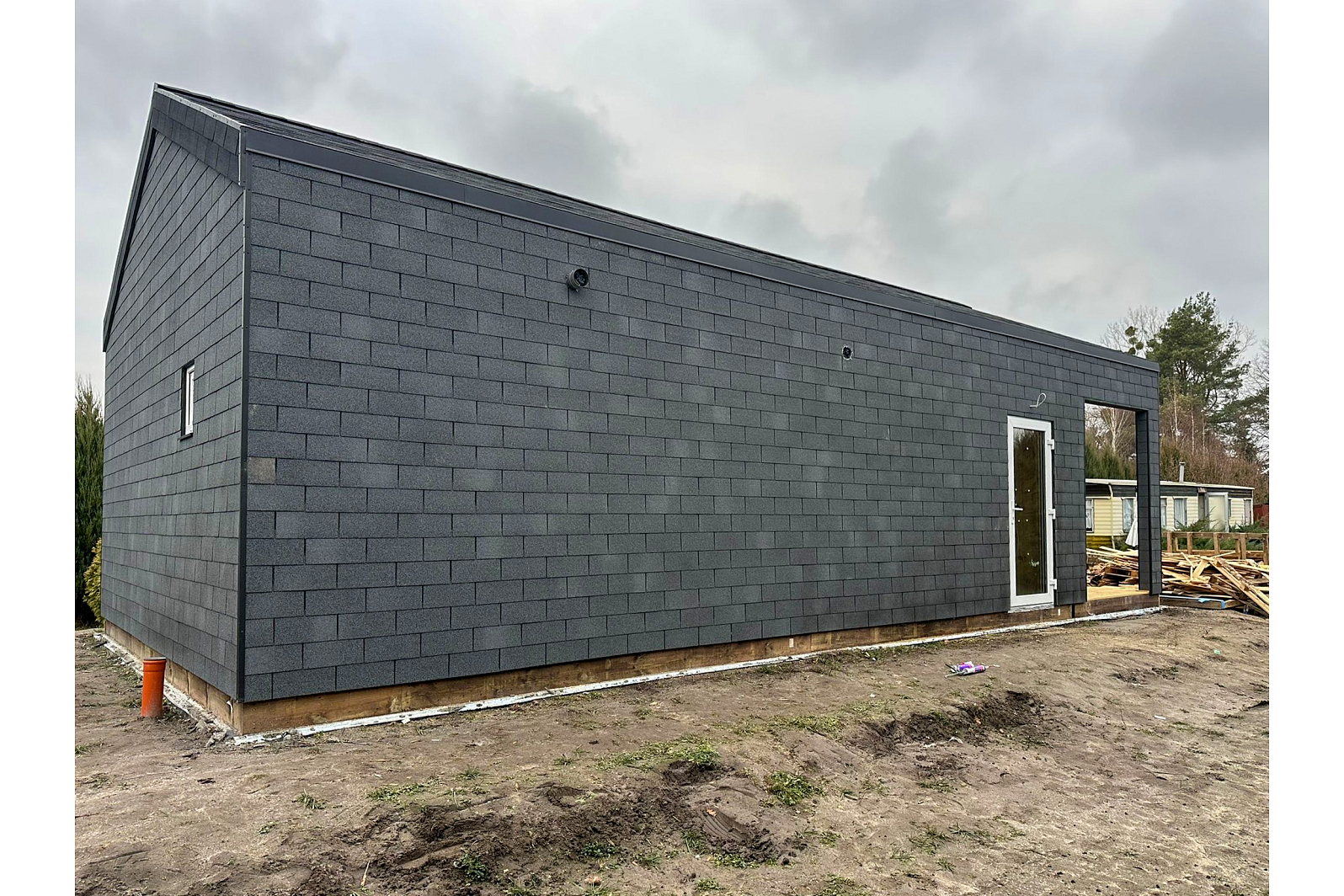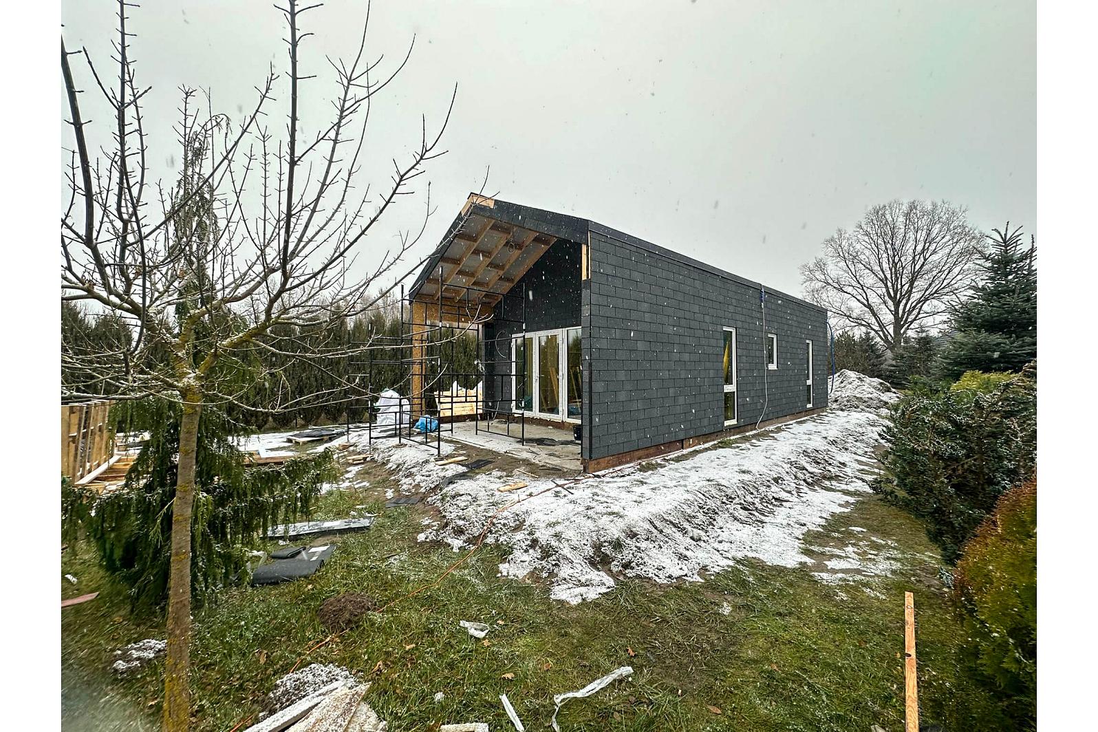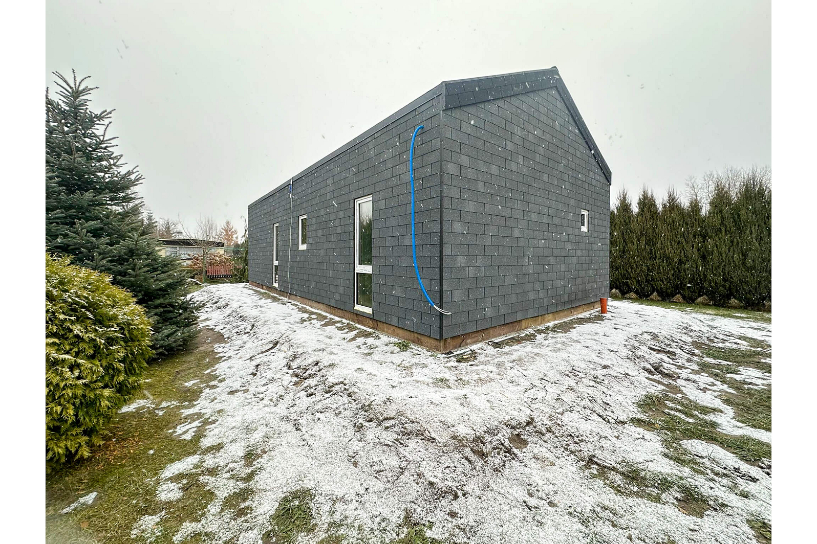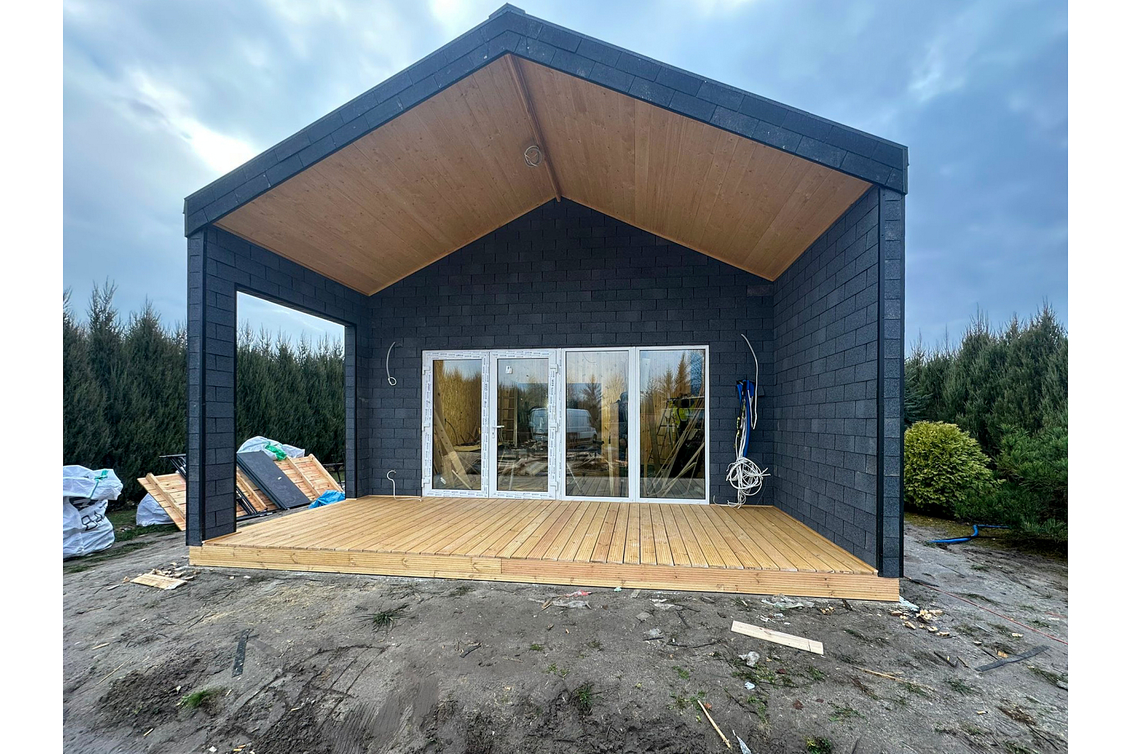 Zobacz galerię, aby poznać wszystkie detale tego domu: przestronne wnętrze, funkcjonalny układ pomieszczeń oraz elegancki taras, który zaprasza do relaksu na świeżym powietrzu. Szczególnie warto zwrócić uwagę na modne wykończenie elewacji gontem bitumicznym – to ciekawa alternatywa dla klasycznego tynku, która zapewnia trwałość i estetyczny wygląd. ✨