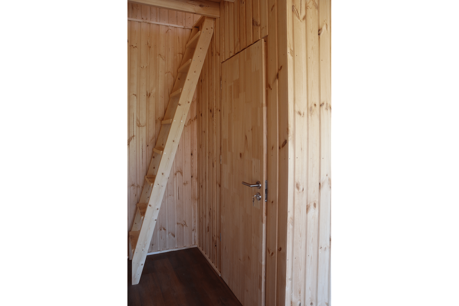 Na piętrze czeka obszerna przestrzeń sypialna, w której można swobodnie wstać, a jej przytulny charakter sprawia, że jest to idealne miejsce na odpoczynek po aktywnym dniu na łonie natury. 🌱