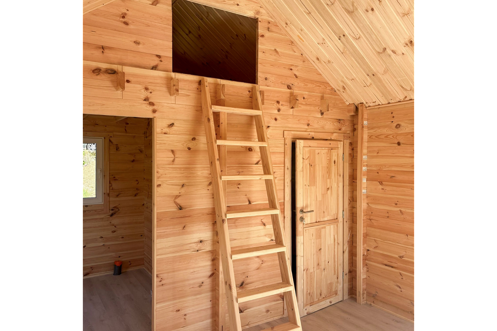 Wnętrze domku zostało starannie zaprojektowane: przestronna kuchnia z salonem, wysokie drewniane sufity, antresola z sypialnią oraz łazienka. Wszystko po to, by zapewnić komfort zarówno podczas weekendowego wypoczynku, jak i dłuższego pobytu latem. Po wejściu do środka wita nas naturalny aromat syberyjskiego lasu sosnowego, który nadaje wnętrzu wyjątkowego charakteru i pozwala poczuć bliskość natury.